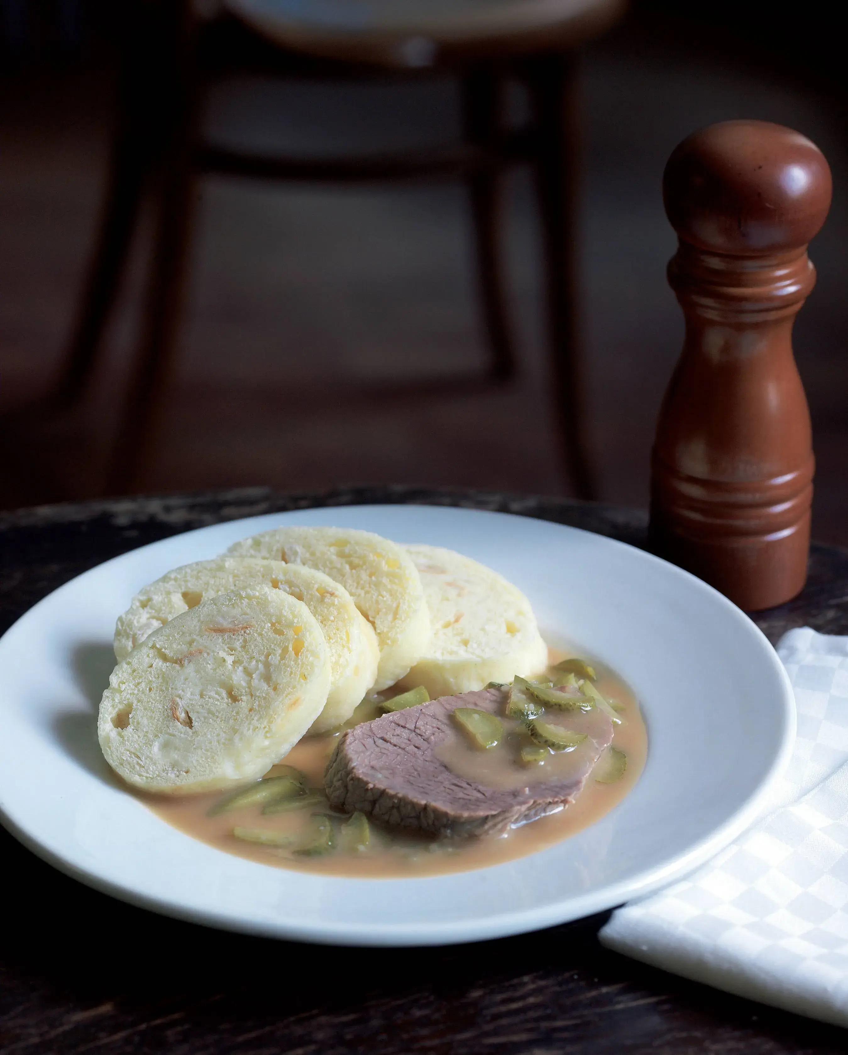 Možná nejtypičtější český knedlík, který se podává ke svíčkové, rajské nebo guláši. Dělá se z kynutého těsta s kousky pečiva, a pokud se povede, je lehký, nadýchaný a pěkně drží tvar. Nejčastěji se vaří ve vodě, ale některé domácnosti ho napařují – to pak bývá ještě jemnější. Tipem pro dobrou konzistenci je přidat do těsta kostičky den starého rohlíku nebo housky.