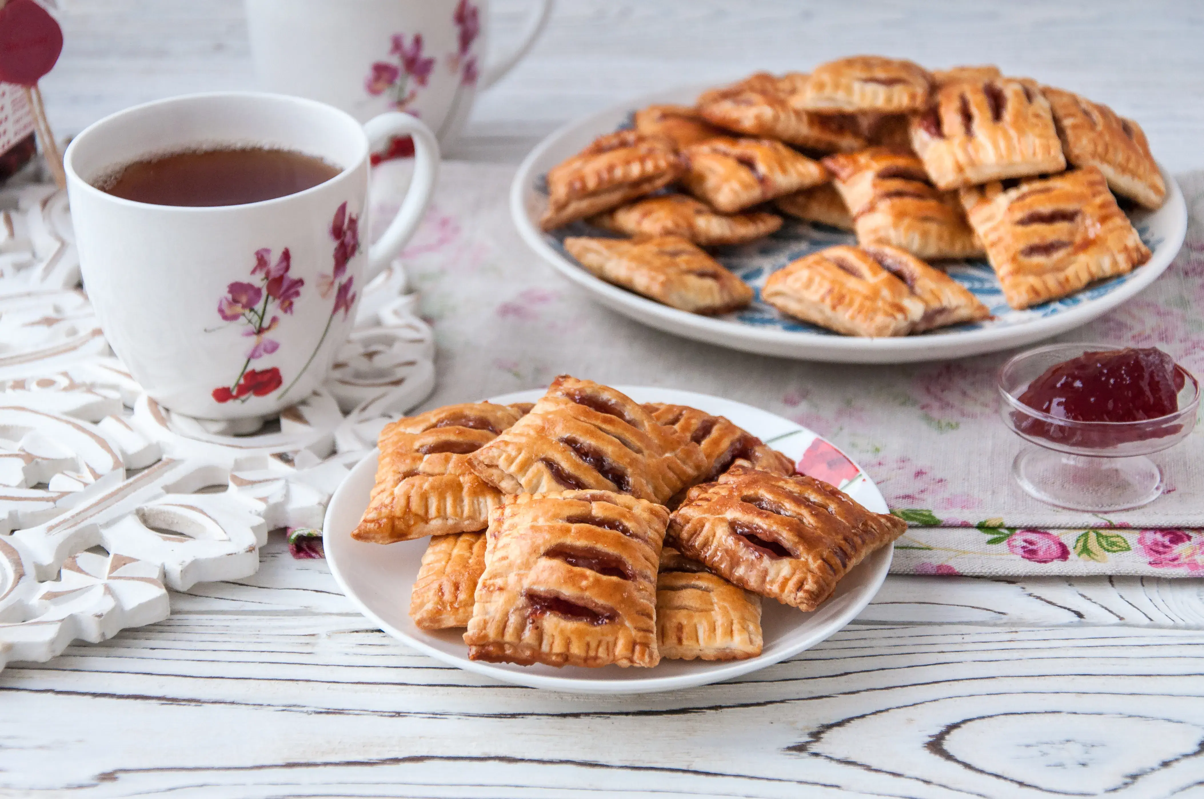 - Taštičky: Těsto se přeloží na polovinu a pevně uzavře po okrajích (případně ozdobí třeba ještě přimáčknutím vidličky) – ideální pro bohaté nebo řídké náplně, které nesmí vytéct. Taštičky jsou perfektní pro slané i sladké verze. Vyzkoušejte třeba tvarohový nebo pudinkový krém, nastrouhaná jablka se skořicí či rozinkami a ořechy, houbovou nebo masovou směs, variace se špenátem apod.