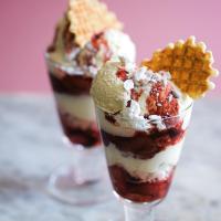 Smetanová zmrzlina s jahodami – jahody se šlehačkou (tou si v každém případě můžete ozdobit i pohár) jsou neprůstřelná kombinace, a když do sklenice přidáte ještě několik bílkových pusinek, získáte zmrzlinovou variantu Eton mess.
