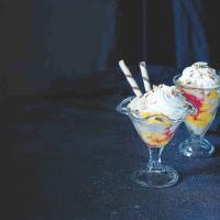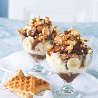Vanilková zmrzlina s čokoládovou omáčkou, šlehačkou a banánem– pod názvem Banana split existuje tento dezert už více než sto let. Servíruje se na oválných talířích či miskách ve tvaru lodičky, ale můžete ho připravit i do poháru.