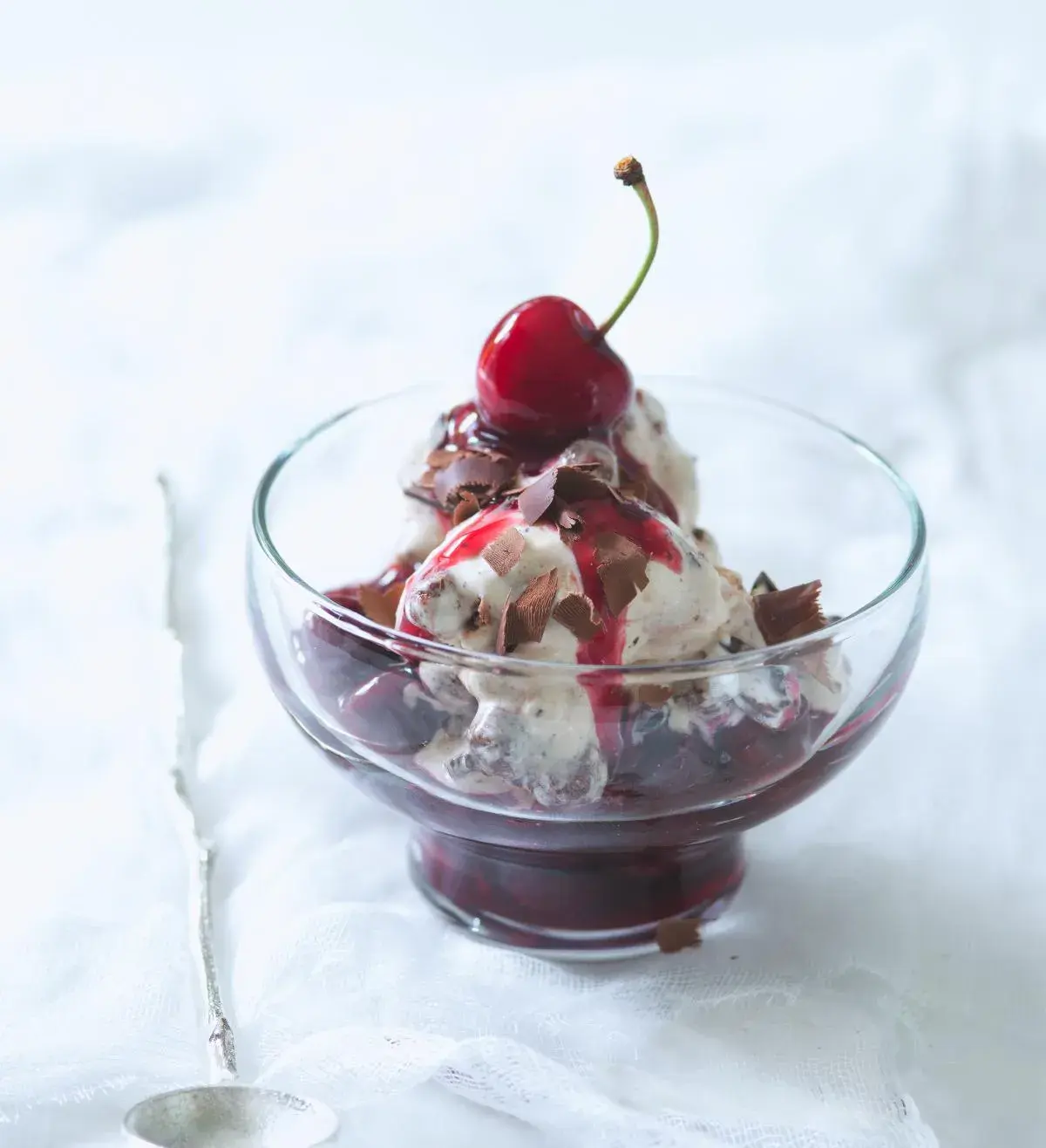 Čokoládová zmrzlina s třešněmi či višněmi (a případně kapkou třešňové pálenky nebo griotky) – kdo by neměl rád višně v čokoládě?