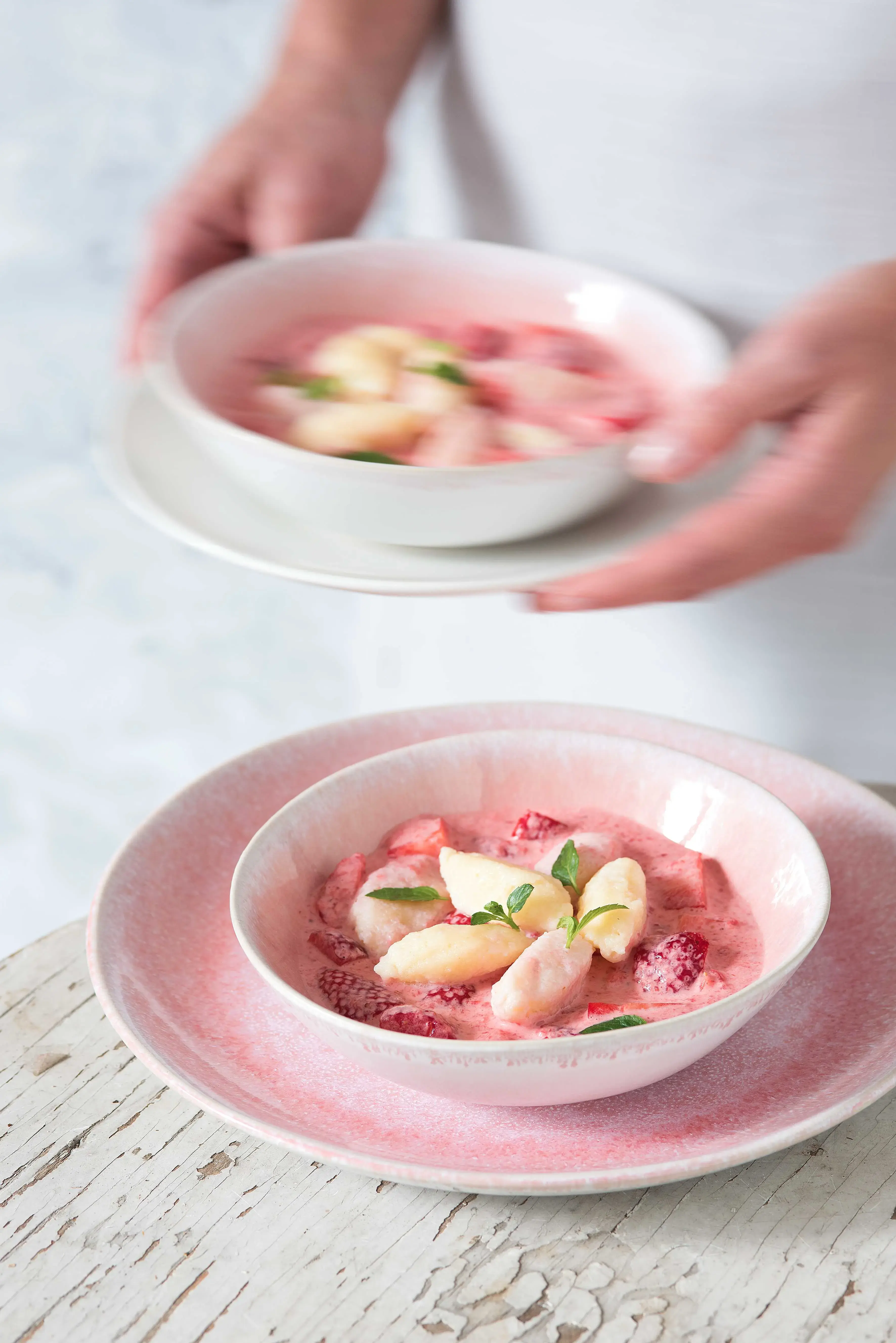 - K ovocným omáčkám se pro zjemnění velmi hodí mléčné výrobky – zakysaná smetana, šlehačka, měkký tvaroh, ricotta, mascarpone.