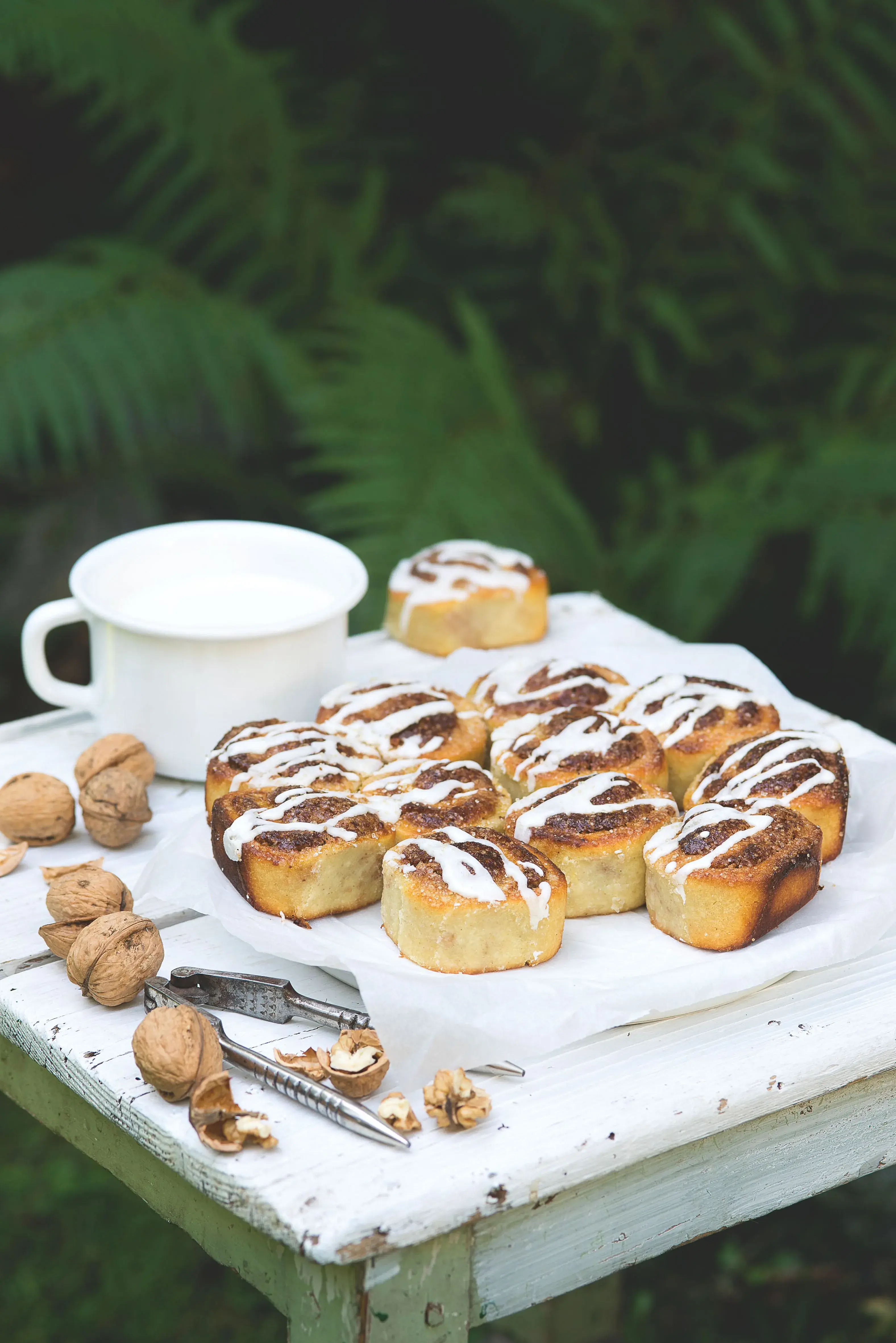 Důkazem toho, že s bramborovým těstem se dají učinit zázraky, jsou tito šneci s ořechy a rumovou polevou. Stačí jen základní těsto rozválet na obdélník 1 cm vysoký, potřít ho ořechovou náplní a smotat do rolády. Tu pak rozkrájet na jednotlivé šneky, naskládat vedle sebe do pekáčku a dát péct. Vychladlé už jen polít rumovou polevou.