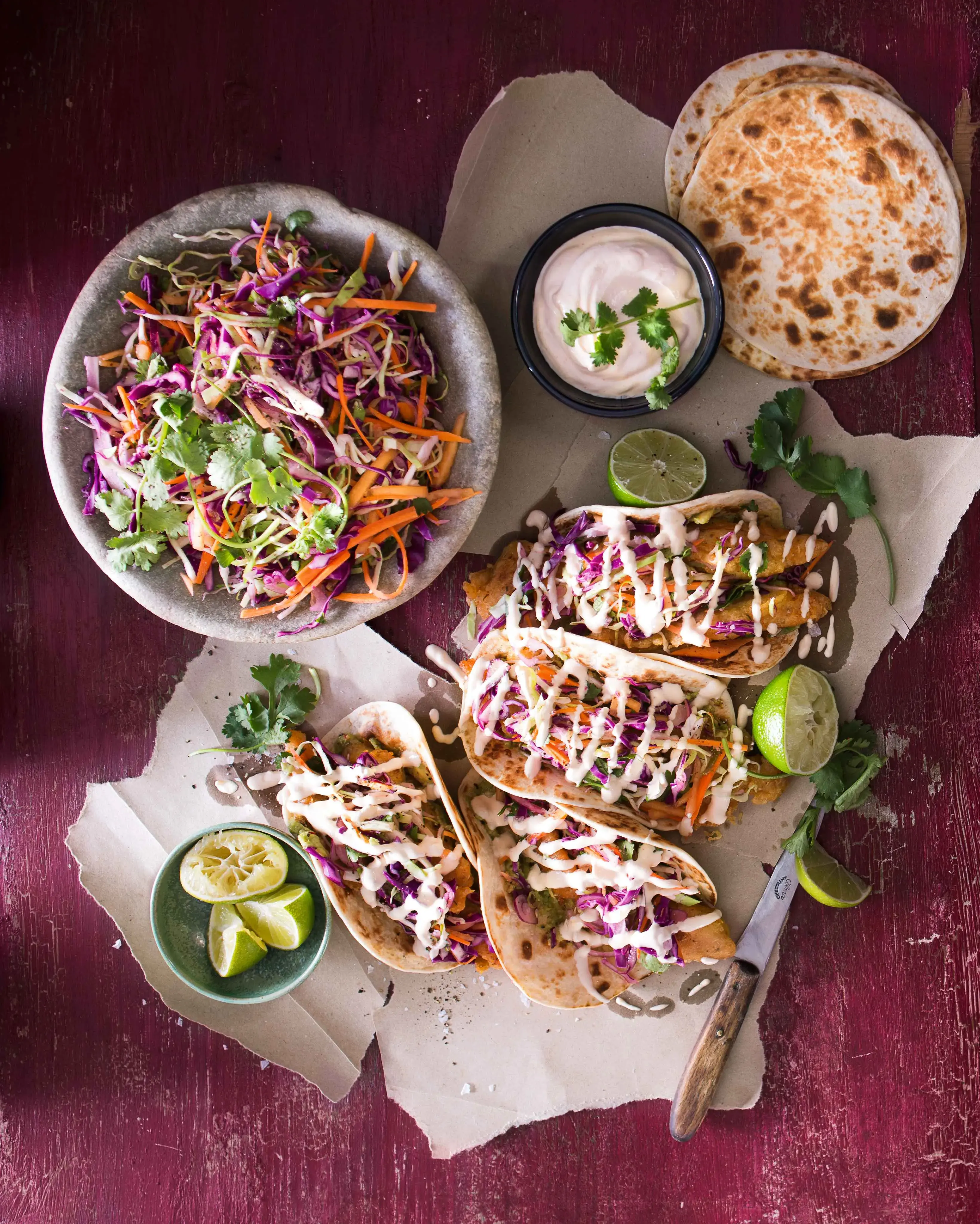 Pokud máte chuť posunout své tacos o další úroveň, připravte tortilly domácí. Ve specializovaných obchodech se dají dokonce koupit speciální lisy, díky kterým snadno připravíte dokonale tenké tortilly. Opéct je na pánvi je pak už hračka. Výhodou domácí přípravy je, že máte dokonale čerstvé tortilly, které servírujete ještě horké, rovnou z pánve na talíř.