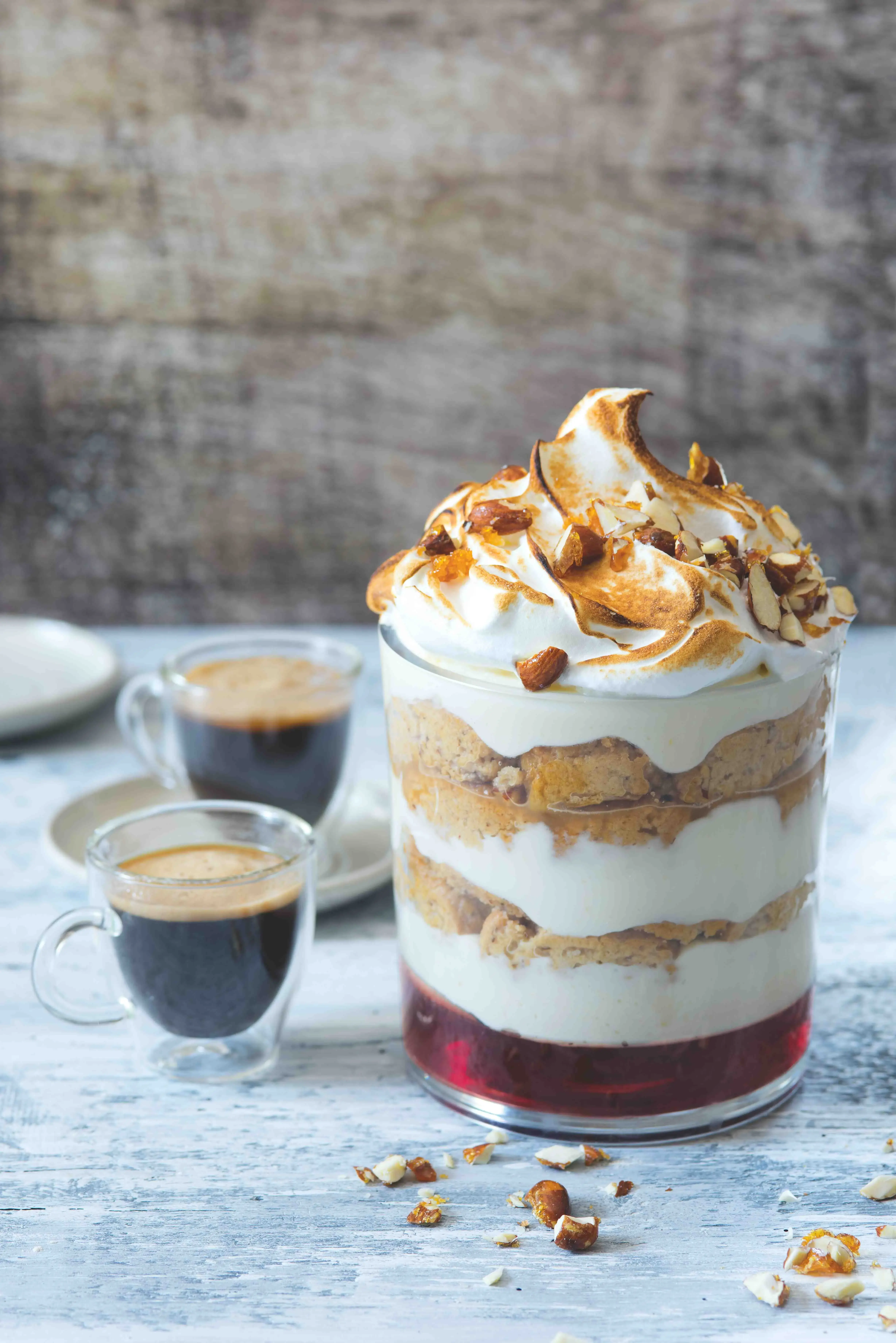 Trifle má původ v Anglii, kde se poprvé objevil už v 16. století. Tehdy se skládal z piškotového těsta, pudinku, ovoce a šlehačky – a v tomhle pořadí se v různých verzích drží dodnes. V zimě má ovšem ještě větší kouzlo: místo letního ovoce do něj patří brusinky, pomeranče, kandovaná kůra nebo čokoláda. Dostává hřejivé chutě, které byste nejspíš chtěli nosit u sebe jako voňavý amulet: skořici, hřebíček nebo pomerančovou kůru.