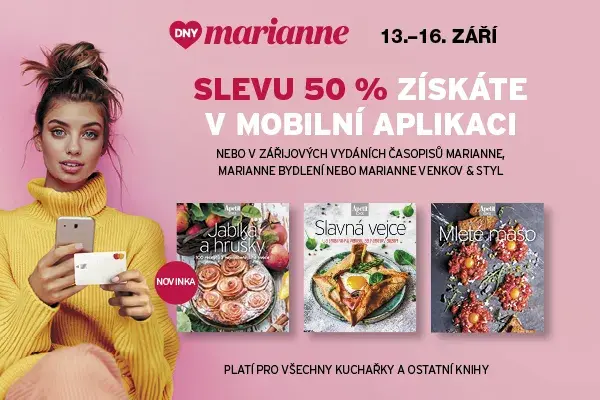 Víkend plný slev, dárků a rozmazlování je už za dveřmi! V pátek 13. září startují Dny Marianne, které si můžete užívat až do pondělí 16. září 2024. Apetit se samozřejmě přidává – kuchařky i předplatné pořídíte za nepřekonatelné ceny!