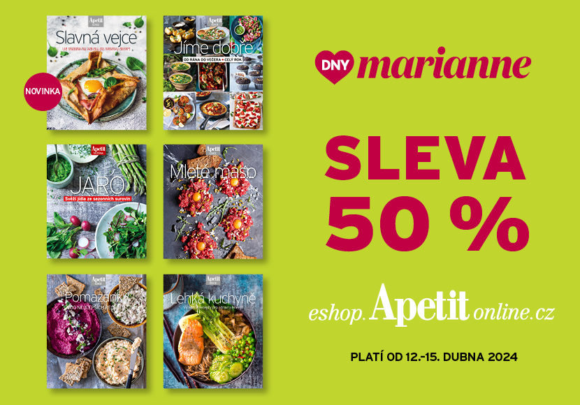 - Od pátku 12. do pondělí 15. dubna 20204 na eshop.apetitonline.cz výhodně nakoupíte i úplnou novinku – kuchařku Slavná vejce.
