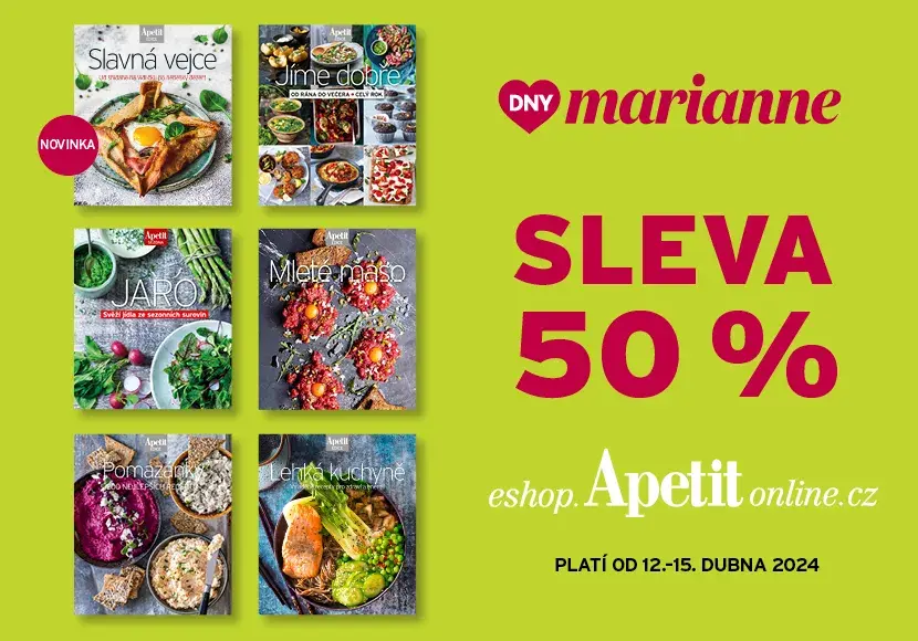 V rámci Dnů Marianne můžete nejen osvěžit šatník či vylepšit byt ale také rozšířit svou sbírku kuchařek Apetit nebo si předplatit Apetit za nejlepší ceny roku. Věříme, že to jsou přesně zprávy, které přinášejí radost!
