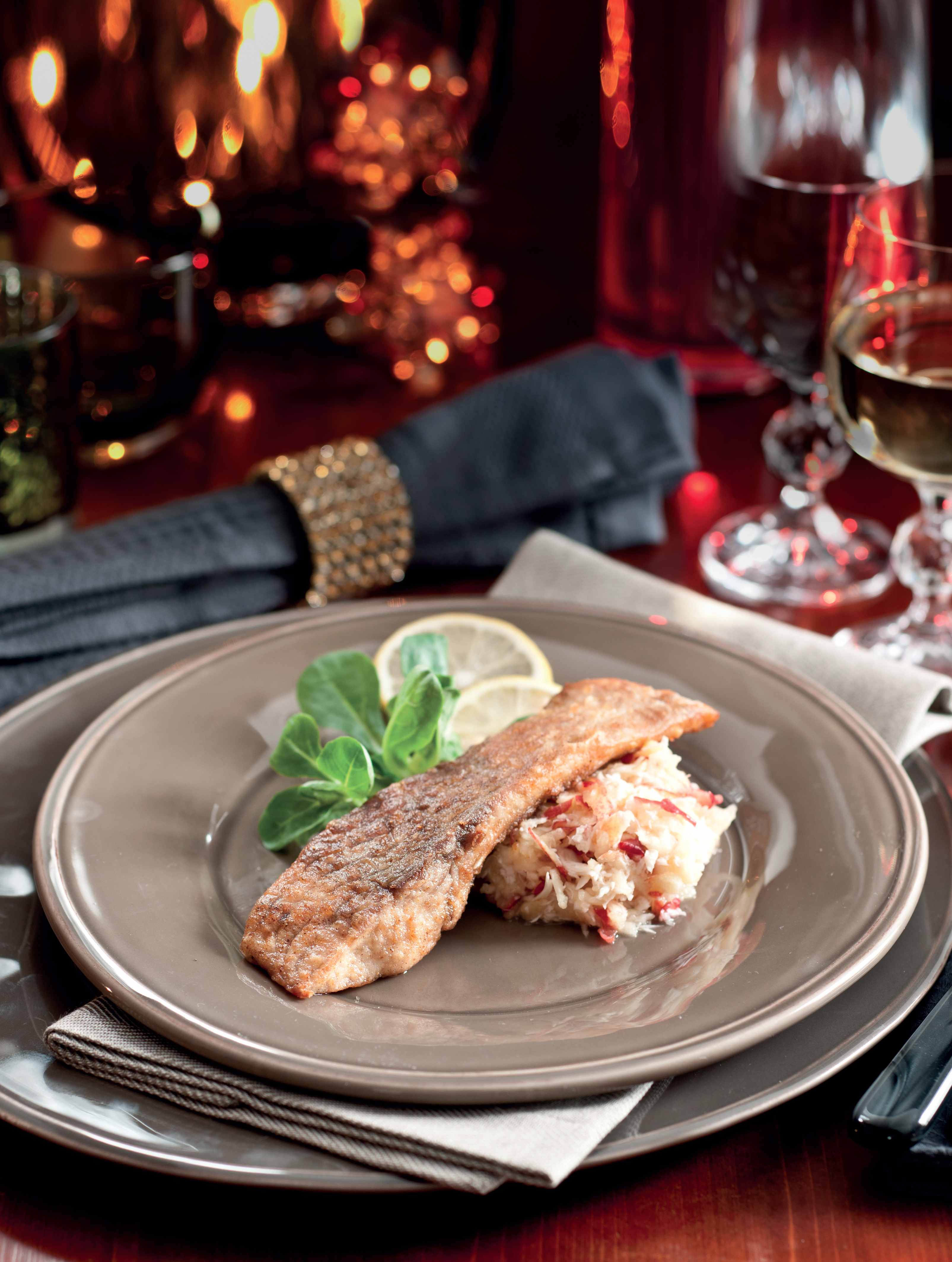 Na Štědrý večer si připravte vyladěnou klasiku v podobě kroupové polévky s houbami, dokonale usmaženého kapra s lehkým bramborovým salátem a vanilkové zmrzliny se švestkovou omáčkou s červeným vínem. Boží hod si žádá opulentní hostinu s mušlemi sv. Jakuba, krůtou s nádivkou a šampaňskou omáčkou. Sladká tečka: pečený ananas s kořením. Na svatého Štěpána připravte menu, které je prostě delikatesní. Najdete v něm cibulovou polévku se sýrovým toustem, pečené hovězí a vepřové se šťouchanými bramborami a nakonec sladkou omeletu z Pohorje. Je nadýchaná jako obláček!
