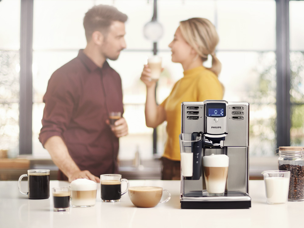 S Philips 5000 LatteGo si můžete každý den vybrat jinou kávu. Na výběr jich máte celkem šest a je jen na vás, jestli si dopřejete klasické espresso, bohaté cappuccino, obří americano nebo třeba oblíbené latte macchiato. Každý nápoj navíc připravíte pouhým stisknutím tlačítka, takže nemusíte nic složitě připravovat ani přemýšlet, jaká všechna tlačítka musíte na kávovaru zmáčknout.