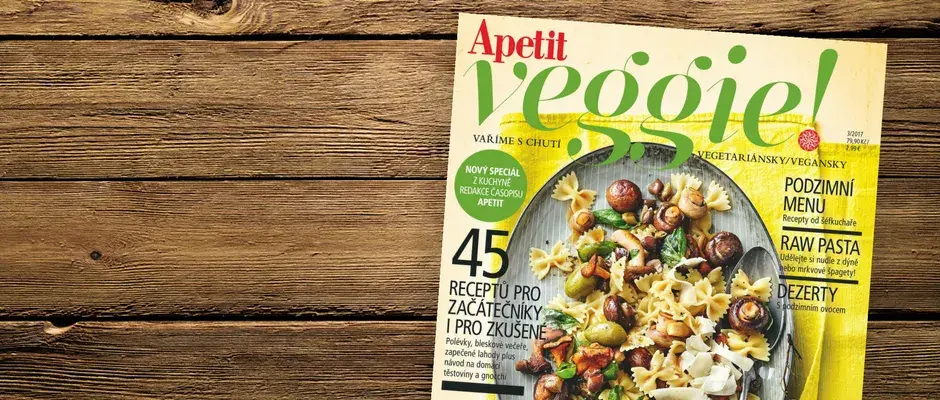 Šťastní jsme i my, protože vám přinášíme již páté vydání Apetit veggie!, zaměřené právě na těstoviny. Představíme vám v něm jak klasické kombinace chutí, tak nové podoby pasty v neotřelých receptech, jako jsou například pappardelle s lilkovo-datlovou směsí nebo linguine v omáčce z modrého sýra s boby zahradními. Nabídneme vám i trendy zeleninové a ovocné špagety, které snadno vykouzlíte pomocí spiralizéru, a návod na výrobu domácí pasty. Zajímavou kapitolu pak představují těstoviny nasladko v kombinaci se sezonním ovocem. Jako vždy vám představíme i několik osobností, kterým vegetariánství či veganství změnilo život, a přidáme tipy na nové produkty, tematické akce, zajímavé kuchařky a oblíbené podniky.