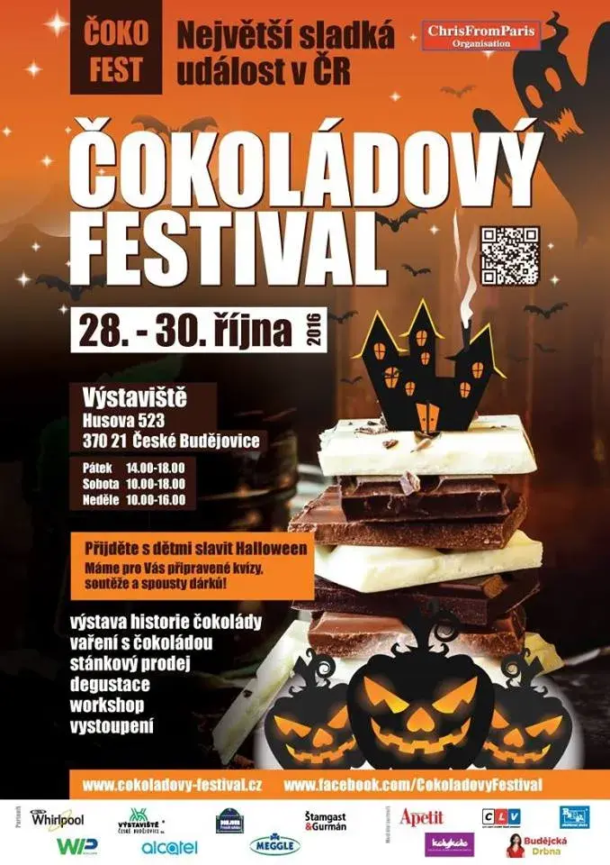 Od pátku 28. října do neděle 30. října 2016 se na Výstavišti uskuteční Čokoládový Festival s výstavou obalů čokolád z celého světa a obrazů malovaných čokoládou, s kulinářskou přehlídkou a prodejními stánky s čokoládovými delikatesami. Čokoládový Festival 2016 pořádaný agenturou ChrisFromParis, jehož mediálním partnerem je i časopis Apetit, je jedinečnou událostí pro všechny milovníky čokolády a cukrovinek, kteří mají chuť se pobavit, pochutnat si a případně se i přiučit vaření s čokoládou.