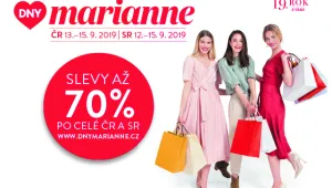 Dny Marianne, to jsou tradičně ty nejlepší nákupy v roce. Tentokrát vás ve více než 6000 obchodech v Česku a na Slovensku čeká až 600 výhodných nabídek a slevy až 70 %. Už teď jsme si jistí, že vám jich určitě přiroste k srdci hned několik – stejně jako dárků za nákupy. My už jsme si své favority vybrali a nemůžeme se dočkat, si splníme svá přání. Vy můžete také – knížky se slevovými kupony a podrobnosti o všech slevách najdete v zářijových vydáních časopisů Marianne a Marianne Bydlení, které jsou právě v prodeji, nebo v mobilní aplikaci Dny Marianne a na www.dny.marianne.cz.