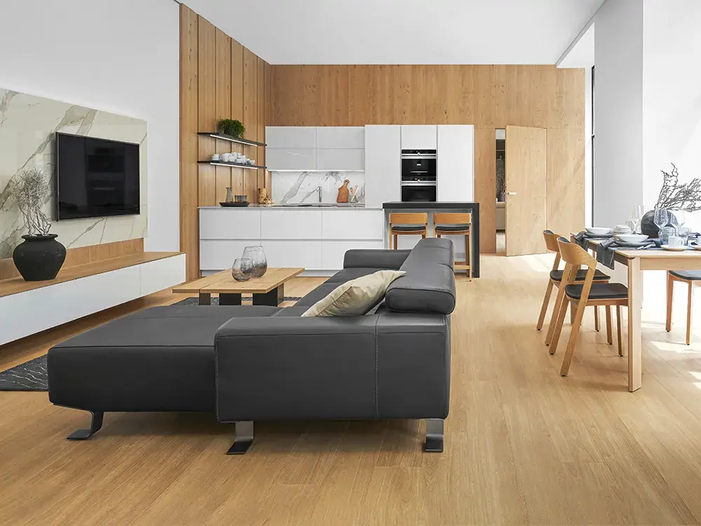 Moderní trend spojení obytného prostoru s kuchyní přináší nové požadavky na estetické řešení. Díky ucelenému konceptu nové kolekce HANÁK NÁBYTEK bude interiér sladěný od kuchyně přes nábytek až po interiérové dveře.