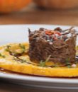 3 Hotové maso se zeleninou rozmačkáme s vlastní šťávou. Podáváme s dýňovým pyré pokapaným dýňovým olejem.