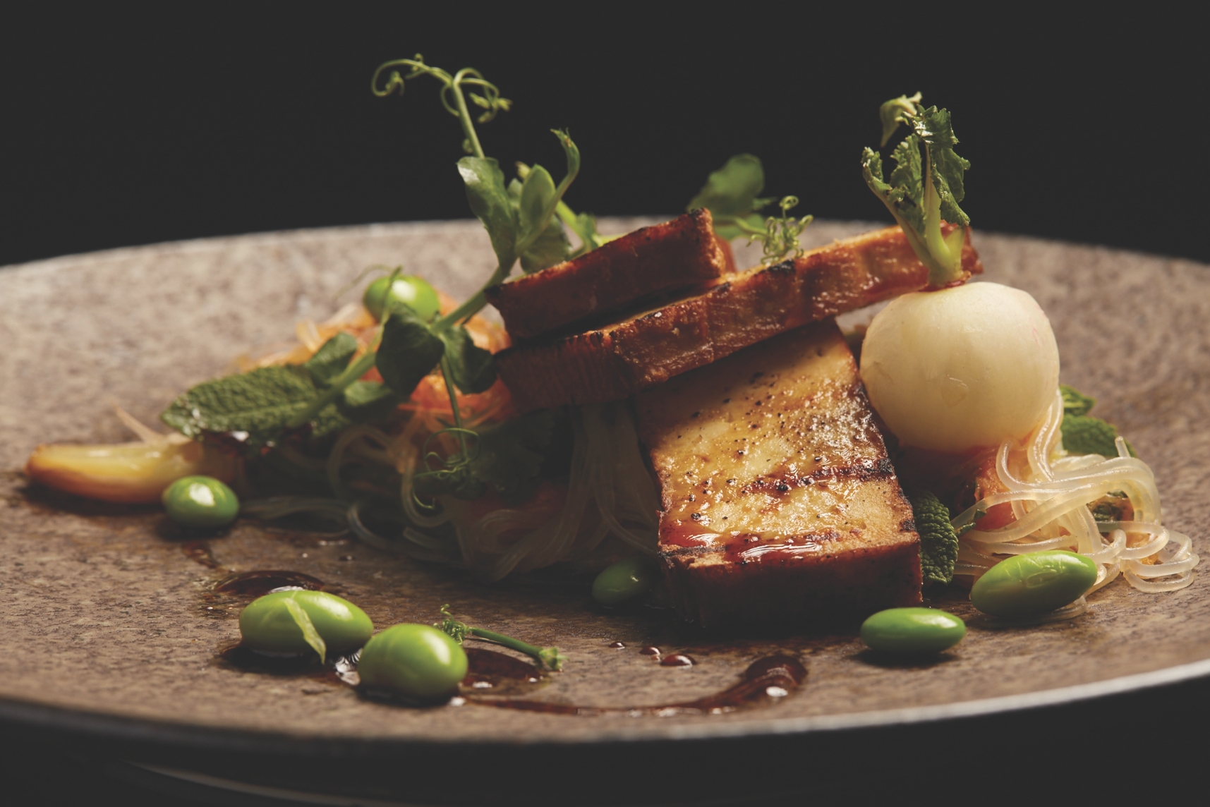 Díky tomu jsou původně průhledné knedlíčky v Guagzhou Har Gow obarvené pomocí sépie načerno, naplněné kachní masem a doladěné omáčkou se základem ze sladké kukuřice. Chicken Wakadori je přitakáním Andyho indonéskému původu, vychází totiž z receptu jeho maminky a babičky na Ayam Kecap, skromného kuřecího jídla z Jávy. Andy mu grilováním na ohni dodal japonský podtón a vytvořil opravdu silný chuťový zážitek.