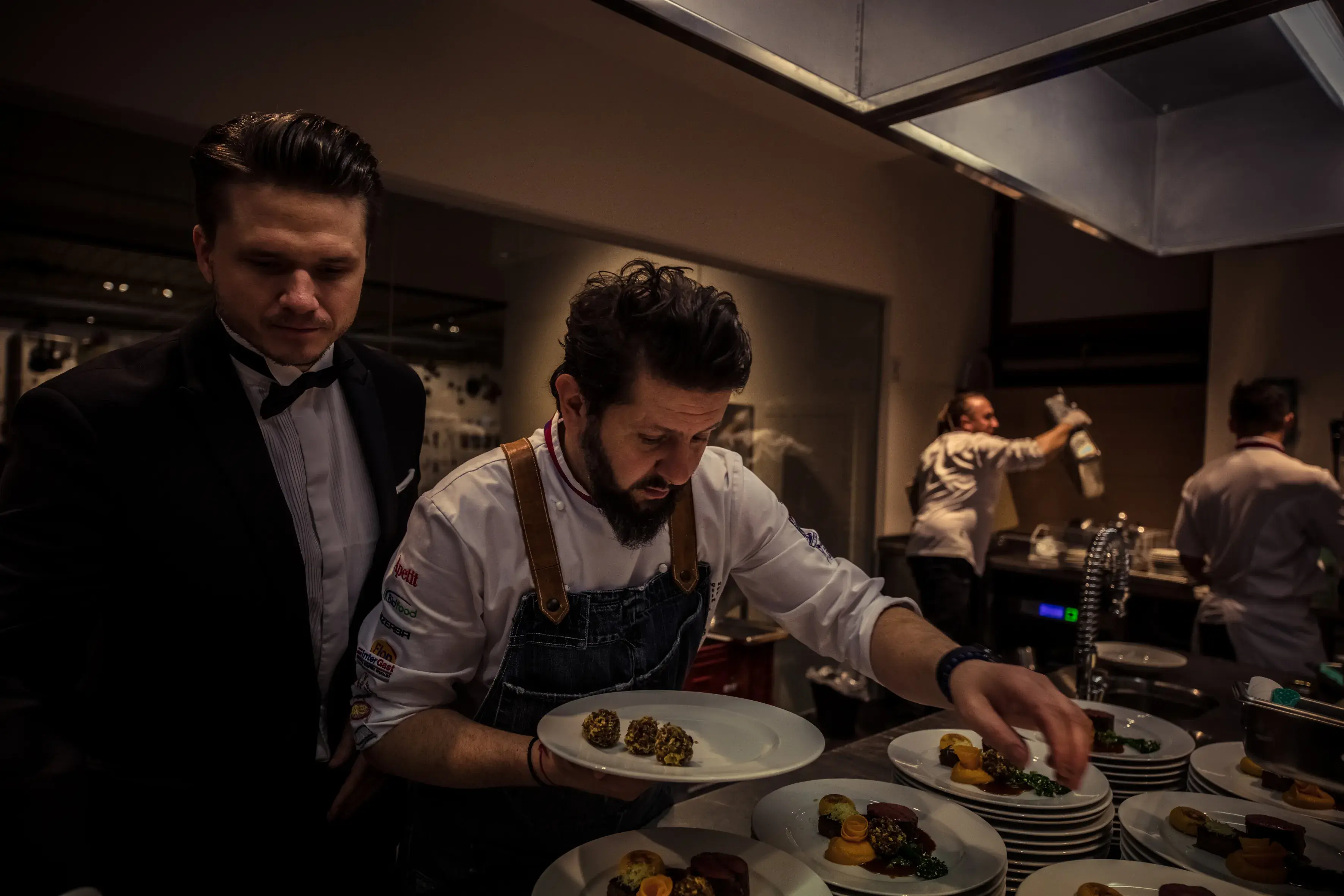 Druhou disciplínou je Chef’s Table – tam připravujeme pětichodové menu – od předkrmu až po dezert – pro dvanáct lidí, kteří jsou usazeni přímo vedle otevřené kuchyně, takže mohou pozorovat tým při práci. Pro tuto disciplínu se tým rozšíří ještě o Martina Staňka, jinak šéfkuchaře ve společnosti Perfect Canteen Filipa Sajlera, cukrářku Hanu Briatkovou, která je spolupracovnicí Heleny Flégrové v HF Pastry Academy, a Ivu Roháčovou, která dělá velké cukrářské modely a skulpury.