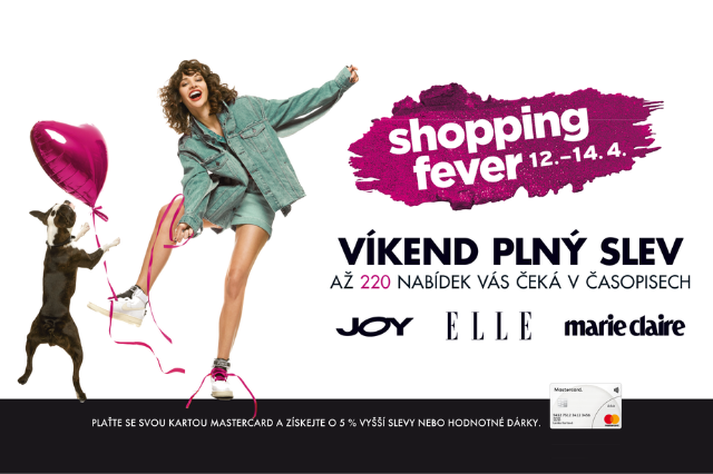 Osvěžte svůj šatník, rozmazlete pleť a zútulněte domácnost a udělejte si radost kousky, o kterých už dlouho sníte! Do exkluzivní nákupní akce pod záštitou magazínů ELLE, Joy a Marie Claire se letos zapojí přes 2700 obchodů a 180 obchodních center v České republice i na Slovensku. Společně si pro vás připravily 220 lákavých slev ve výši až 50 %! Stačí, když budete mít připraveny kupony z kuponové knížky a předložíte je během placení u pokladny. Pokud se nechcete zdržovat vystřihováním, jednoduše si kupony zakupte prostřednictvím mobilní aplikace pro iOS nebo Android, a budete je mít pořád při ruce. Od pátku 12. do neděle 14. dubna se zkrátka opravdu vyplatí vyrazit na nákupy! Nečekají vás ovšem jenom slevy a výhodné nabídky. Můžete se těšit i na nejrůznější dárky a soutěže o hodnotné ceny! Nezapomeňte se s námi podělit o své zážitky z nákupů! Sdílejte je na sociálních sítích s hashtagem #shoppingfever2019.