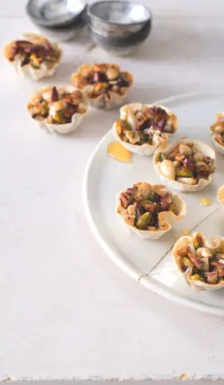 - Oříšková náplň tvořící strukturu i chuť, se plní mezi vrstvy doprostřed. Použít můžete všechny druhy ořechů, v Arábii se setkáte s pistáciemi, ty však můžou nahradit mandle či vlašské ořechy. Chutnat vám bude i směs druhů, které máte zrovna po ruce.