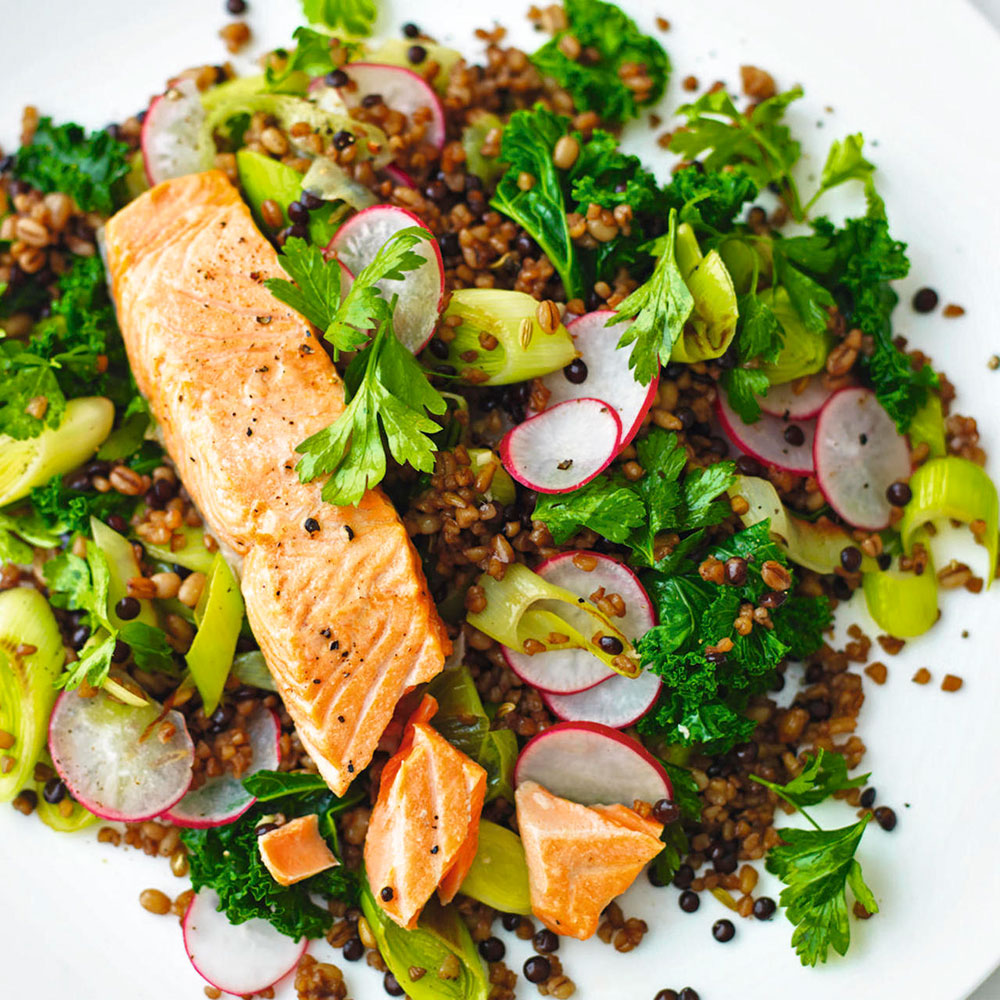 3 Uvařte čočku doměkka dle instrukcí na obalu. Poté ji přidejte do směsi z pórku a na závěr přidejte nakrájené ředkvičky. Osolte a opepřete podle chuti.