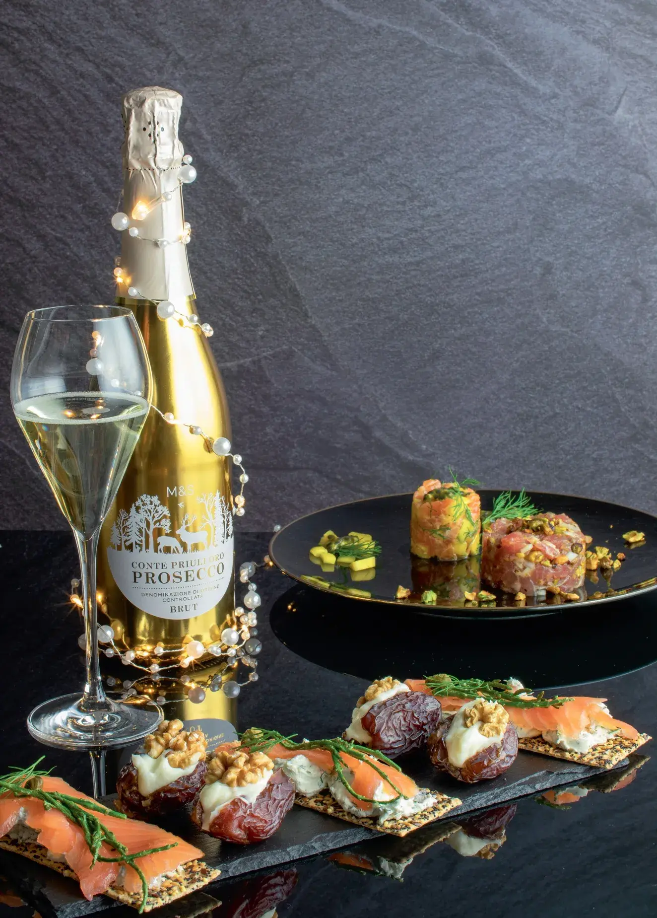Málokdo si umí představit silvestrovské posezení bez největší české stálice, jednohubek. A my říkáme – ať žijí dál! Ale samozřejmě se stylem a špetkou fantazie. Ovšem uvědomujeme si, že nikdo nechce trávit své drahocenné volno v kuchyni, půl dne vařit a druhou půlku dne všechno sestavovat dohromady. Proto jsme pro vás připravili několik rychlých, ale hlavně svůdně chutných receptů, jež si můžete připravit doma z produktů Marks & Spencer a které vám dohromady nezaberou více než hodinu času. Vsadili jsme na čerstvost, kvalitu a nevšednost chutí, tak aby byl váš poslední den v tomto roce nezapomenutelný! A samozřejmě nesmí chybět prosecco!