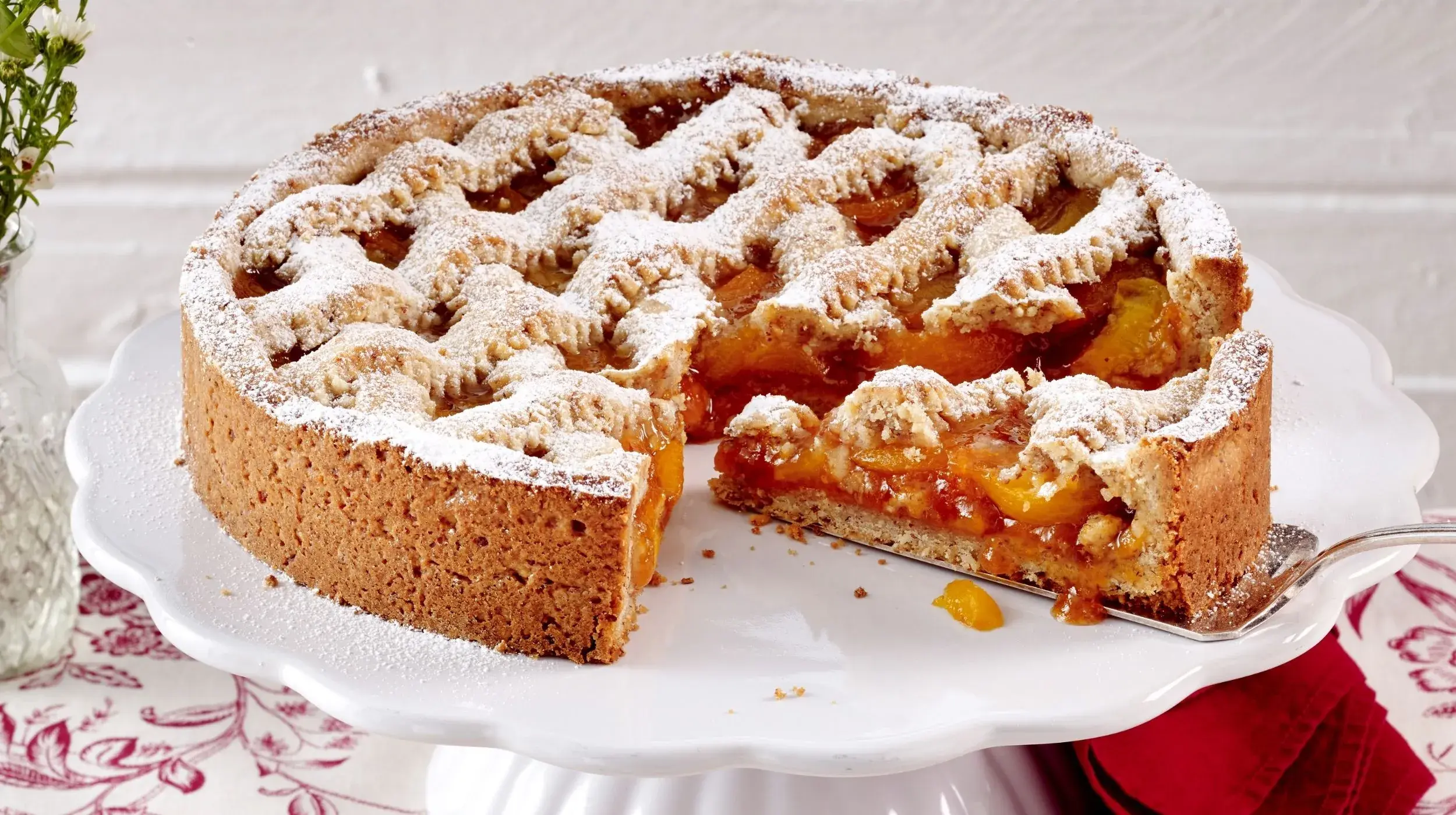 - Meruňky scedíme a nakrájíme na plátky. Předem vymažeme formu (Ø 24 cm) a poprášíme moukou. Přibližně polovinu těsta rovnoměrně natlačíme do formy a vytvoříme základní vrstvu a asi 2 cm vysoký okraj. Strouhankou rovnoměrně posypeme základ těsta. Meruňkové plátky umístíme do kruhu. Darbo džem krátce promícháme, dokud nebude hladký, a rovnoměrně ho rozložíme na meruňky.