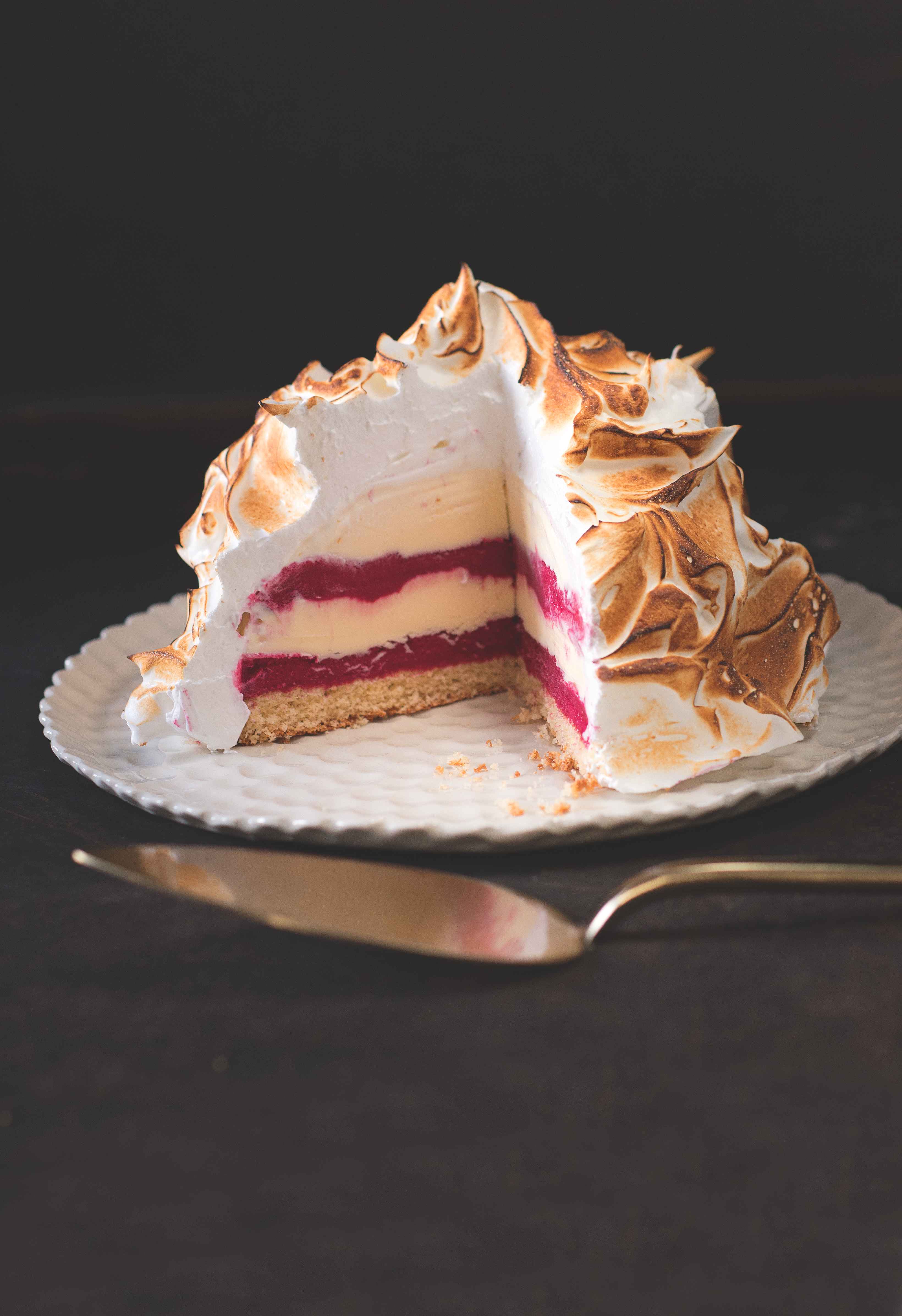 Efektní dezert, který můžete opálit hned třemi způsoby: buď v troubě pod grilem (bílky málo vedou teplo), nebo jako my cukrářskou pistolí, či hotový sníh postříkejte minimálně 40% alkoholem a zapalte. Na stůl tak ponesete Aljašku v plamenech!