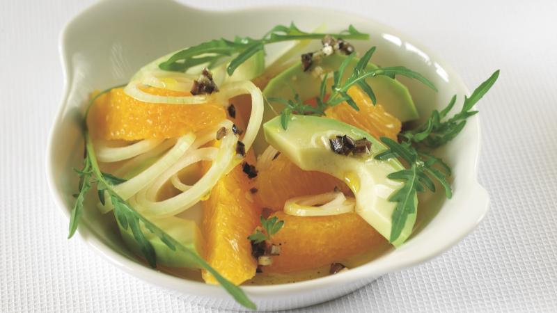 Autor: Redakce Apetit , z vydání Apetit Avokádovo-pomerančový salát s černými olivami