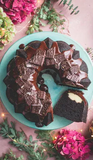Bábovka v opravdu neotřelé podobě – ze svařeného vína a navrchu politá hořkou čokoládou. Skvělý způsob, jak zužitkovat nedopitý svařák, nebo naopak o důvod víc si ho připravit.