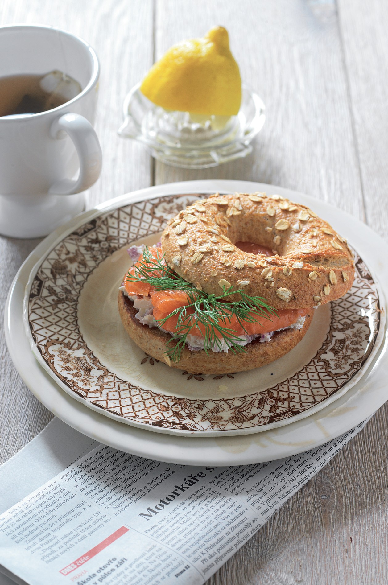 Bagel s lososem ke snídani i svačině. Stejným způsobem můžete naplnit croissant, žemli či francouzskou bagetu. Spojení kopru, čerstvého sýru a uzeného lososa je sázka na jistotu.