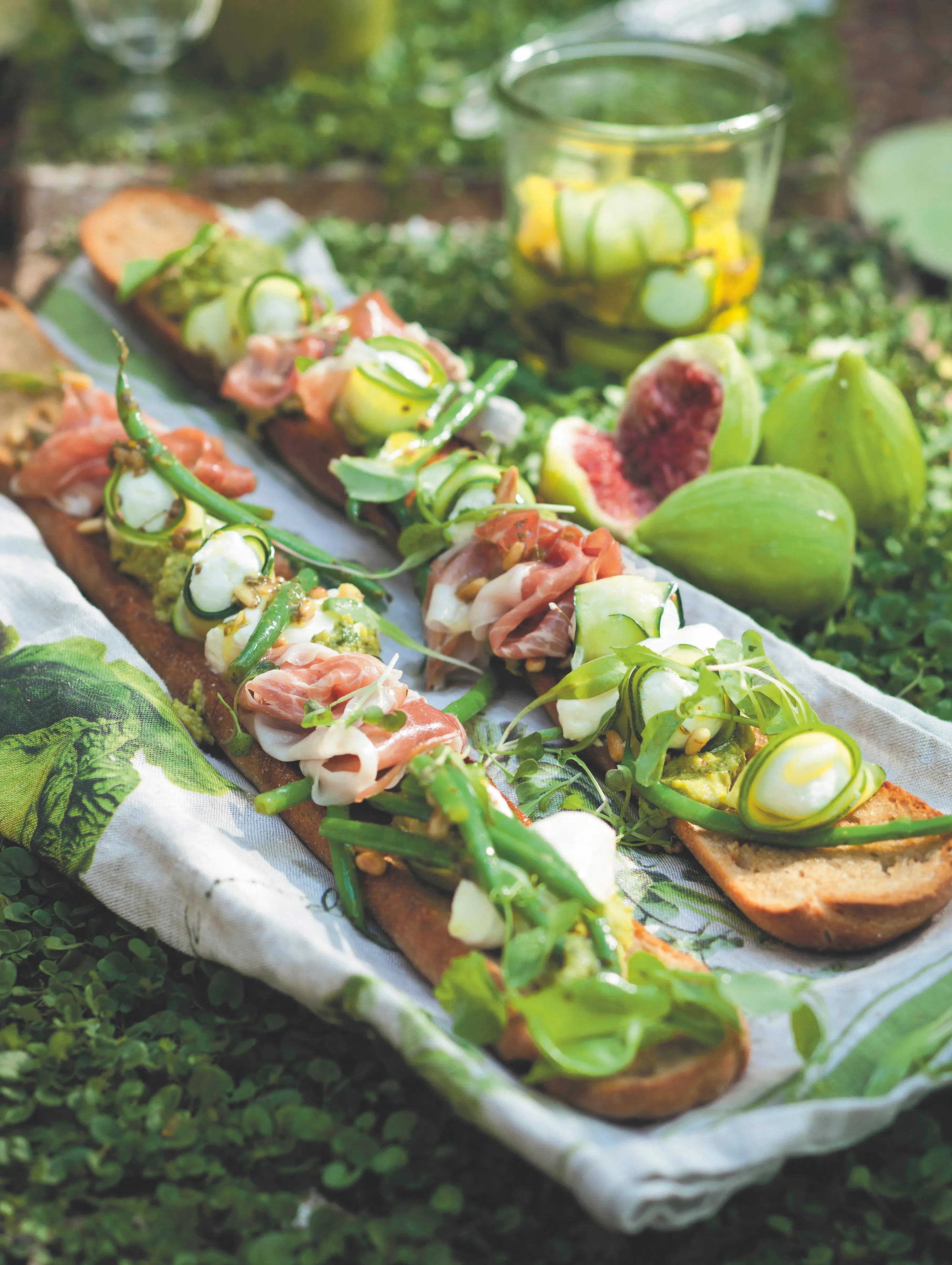 Jaro v kuchyni znamená jediné: lehká a rychlá jídla, která hrají všemi odstíny zelené. Po zimě toužíme po svěžesti a tato jednoduchá bageta se šunkou a fazolkami to přesně splňuje.