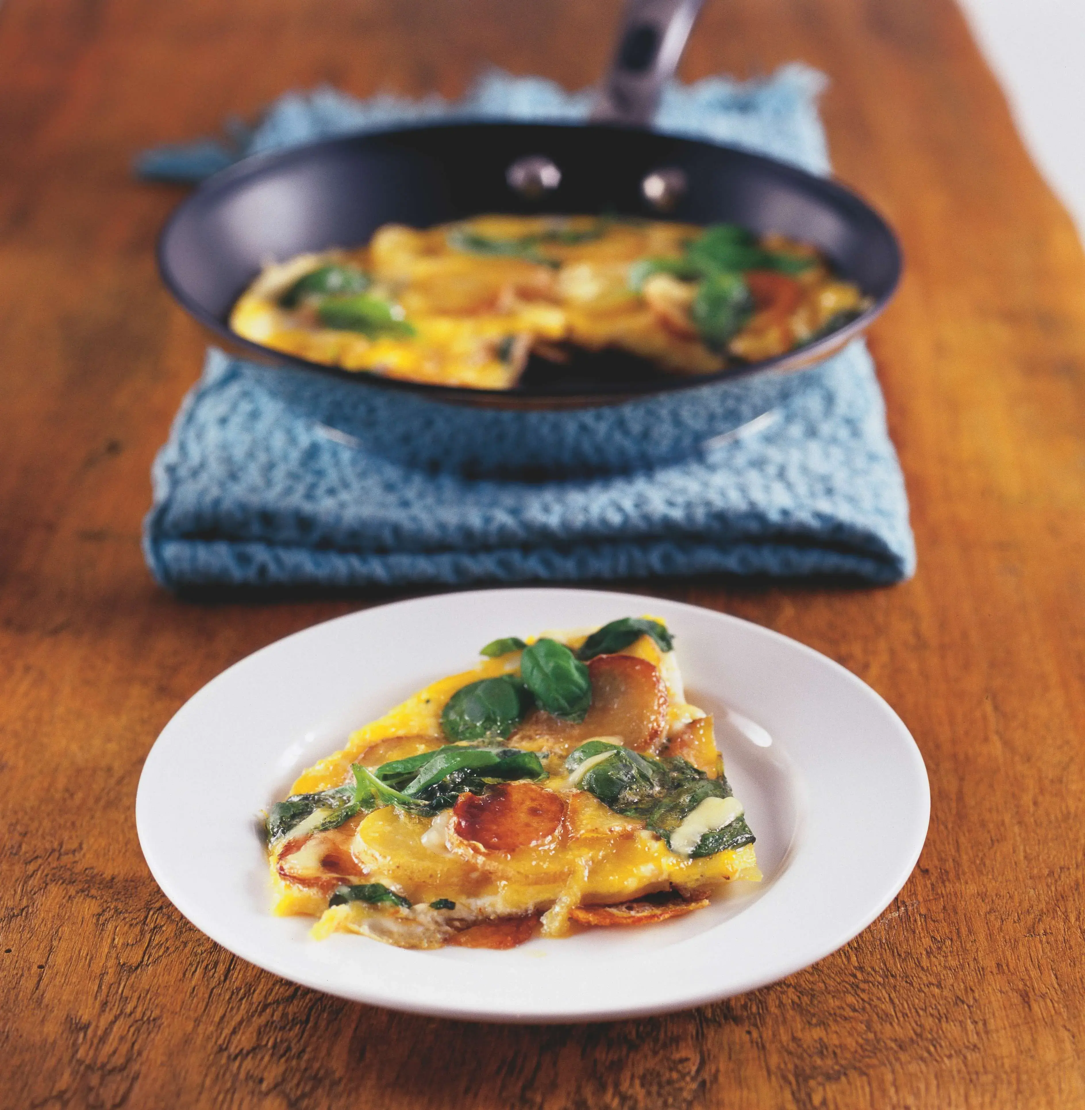 Ze své podstaty jsou frittaty omelety. Poskytují elegantní únikovou cestu všem zbylým dobrotám, které byste ještě rádi zhodnotili. My jsme si vybrali brambory, ovšem doplnili jsme je opojnou vůní bazalky.