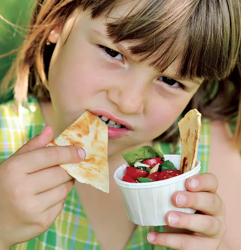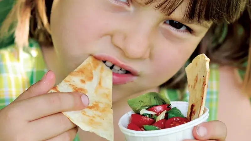 Bazalková rajčata můžete doplnit i kousky mozzarelly – klasické caprese děti milují.