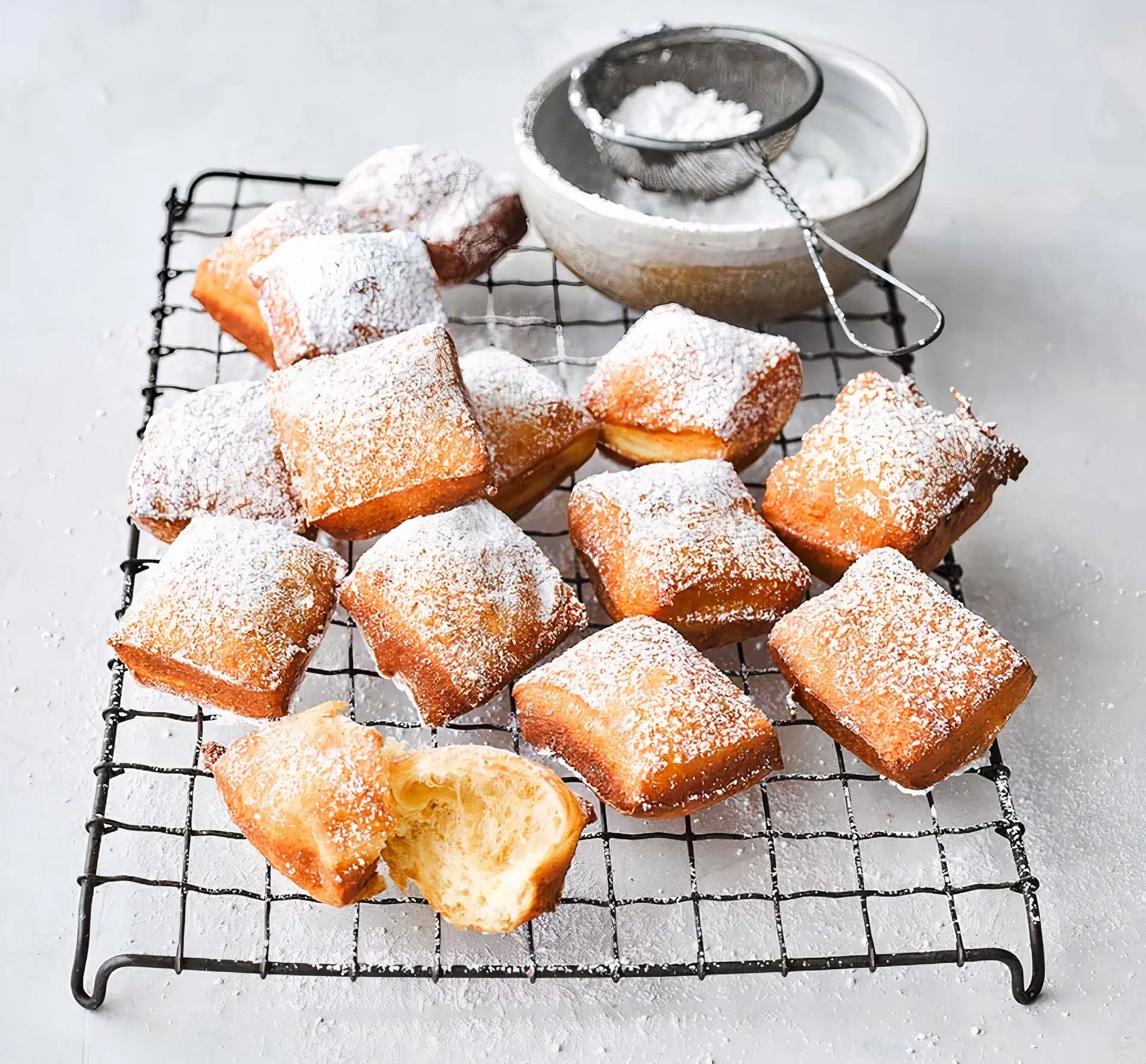 Dopřejte si křupavé, zlatavé beignets ve stylu New Orleans. Díky zahuštěnému mléku a pomalému kynutí přes noc jsou neuvěřitelně nadýchané. Nejlépe chutnají ještě teplé, zasypané vrstvou moučkového cukru. Trochu jiné koblihy, které si vás získají!