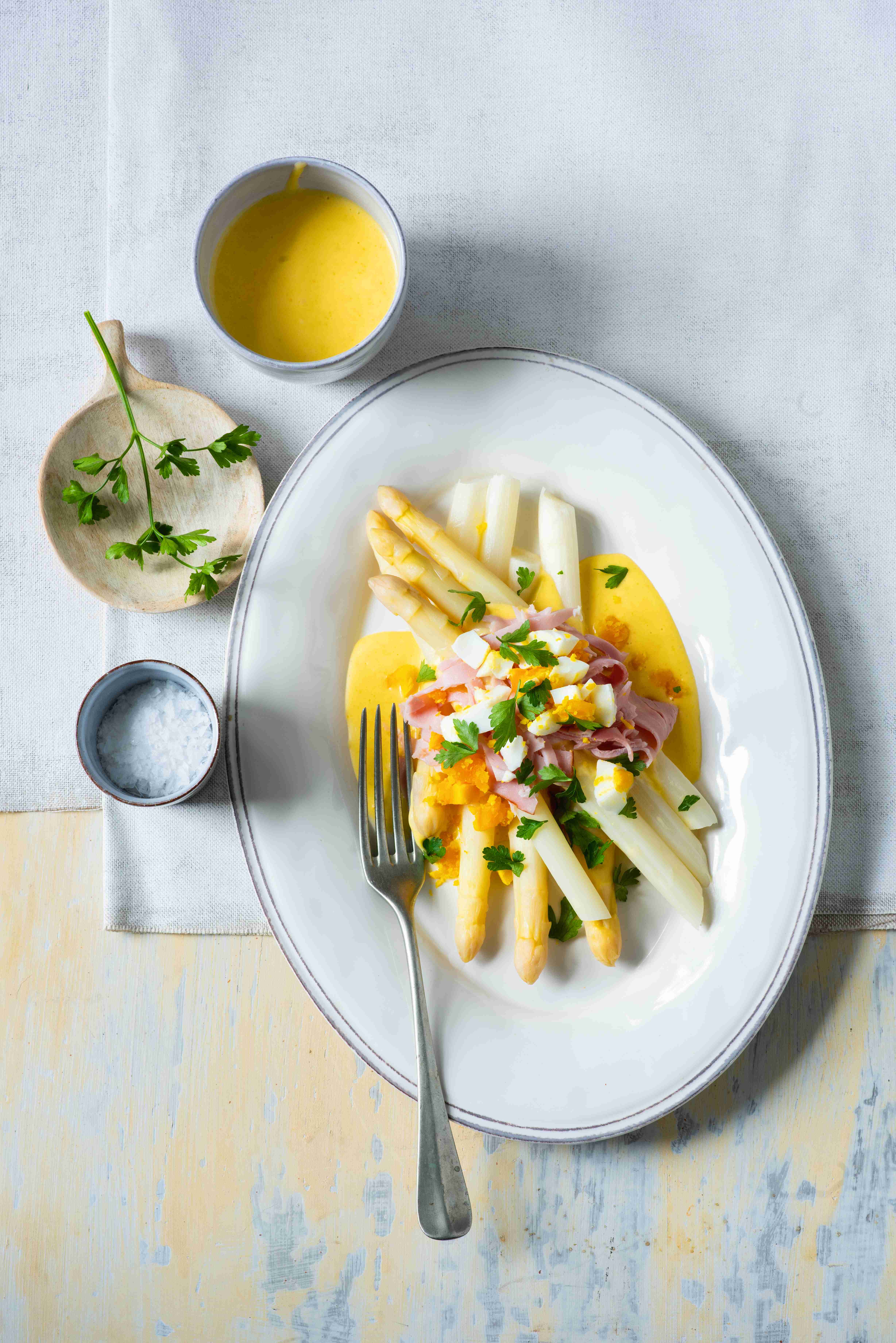 Bílý chřest s holandskou omáčkou, šunkou a vejcem – jednoduchý, elegantní a vynikající, přesně takové recepty máme rádi. Pokud si netroufáte na přípravu holandské omáčky, vězte, že chřest bude skvělý i s rozpuštěným máslem, vejci, šunkou (tu můžete pro vegetariány vynechat) a petrželkou.