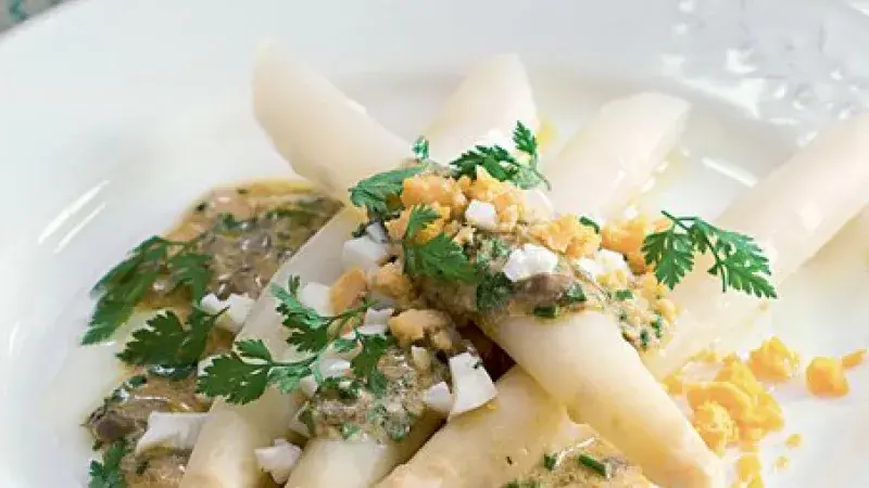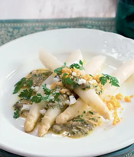 Bílý chřest můžete kombinovat s jemnými omáčkami, ale i s výraznými, jako je tahle.