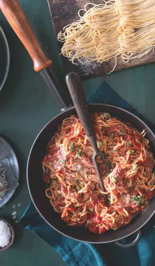 Recept britské kuchařky Nadyii Hussain nás zaujal nejdřív svou jasnou barvou. Pro větší pestrost jsme přidali ještě kadeřávek a pšeničné těstoviny vyměnili za celozrnnou variantu. Pokud máte rádi řepu, budete tohle skrznaskrz zdravé jídlo zbožňovat! Bleskové těstoviny s omáčkou z červené řepy a fetou je pro mnohé výzva, která mile překvapí.
