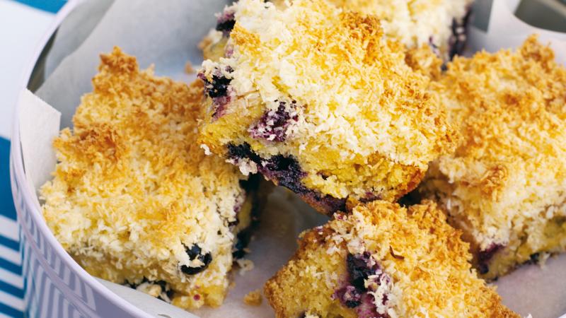 Naprosto úžasný koláč s borůvkami a kokosovou drobenkou, který zvládne každý.