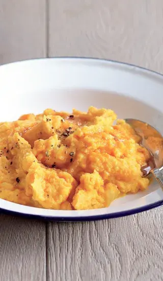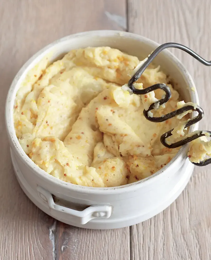 Kombinace krémové bramborové kaše a řízné hořčice je prostě geniální!