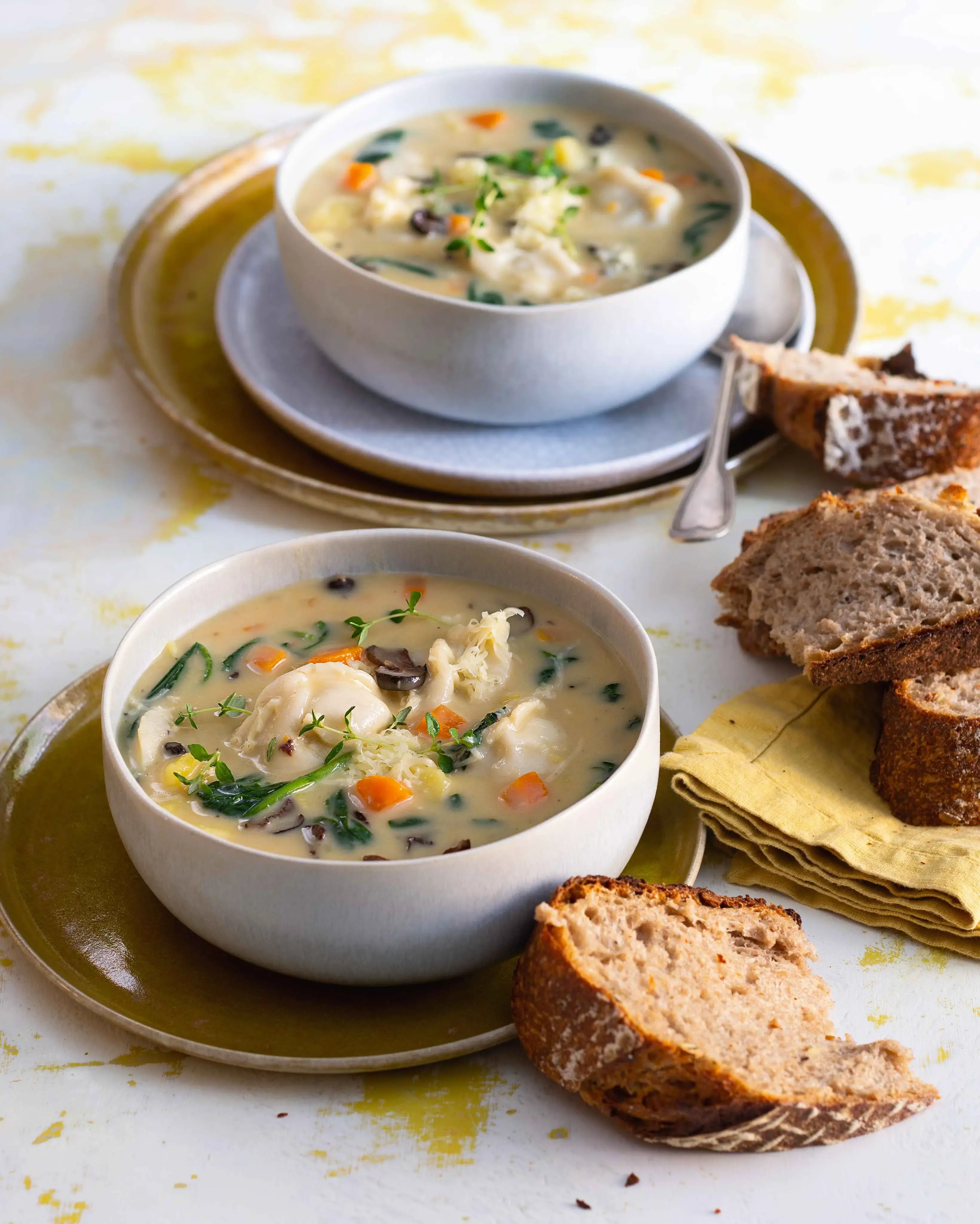 Bramborová polévka je díky pelmením hustá a vydatná, takže vám po ní v noci rozhodně hlady v břiše kručet nebude. Náplň pelmení můžete zvolit podle chuti. Použít můžete i tortellini.