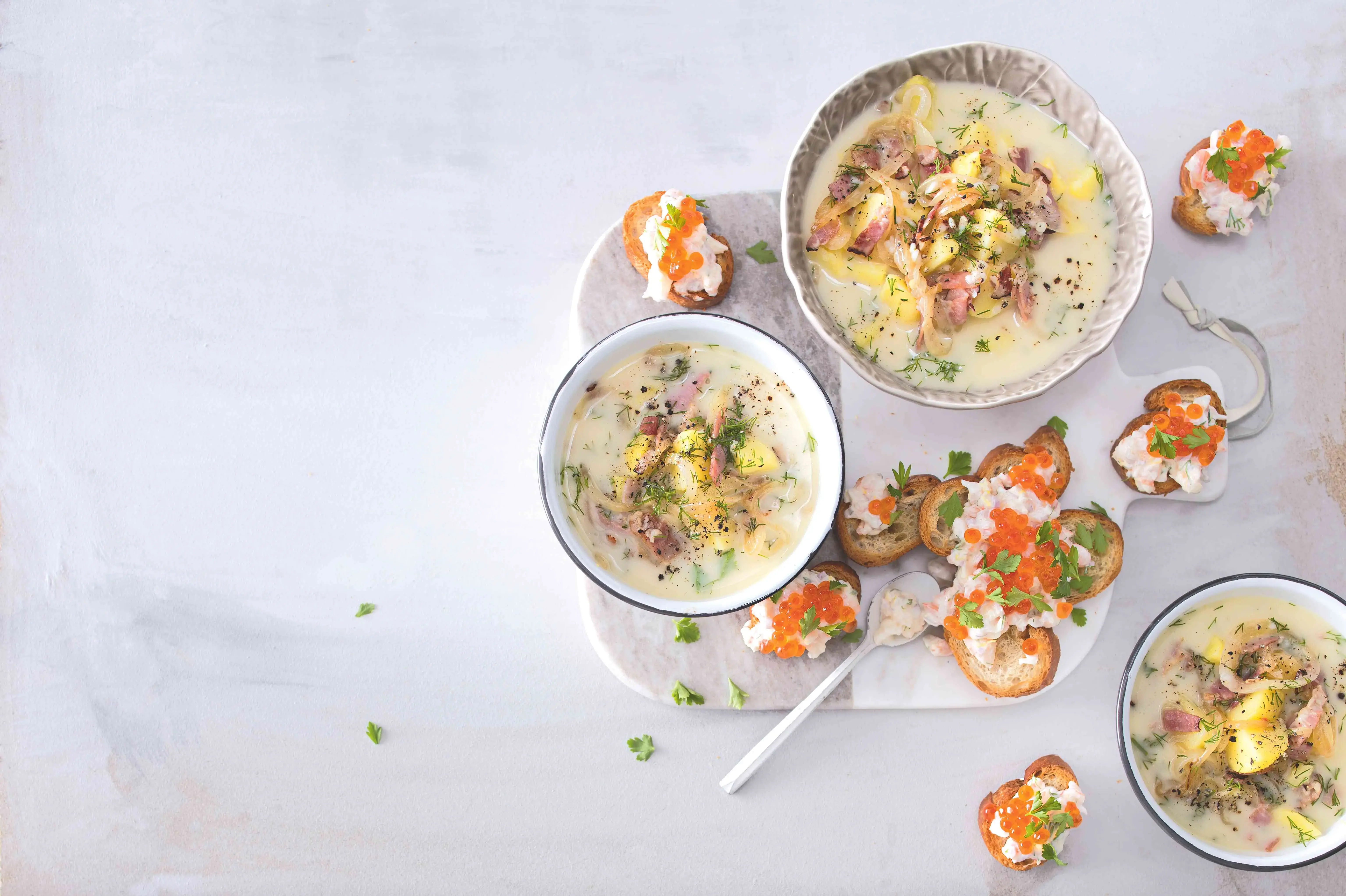 Lehce nakyslé polévce s koprem a chlebíčkům vonícím mořem to spolu náramně sluší!