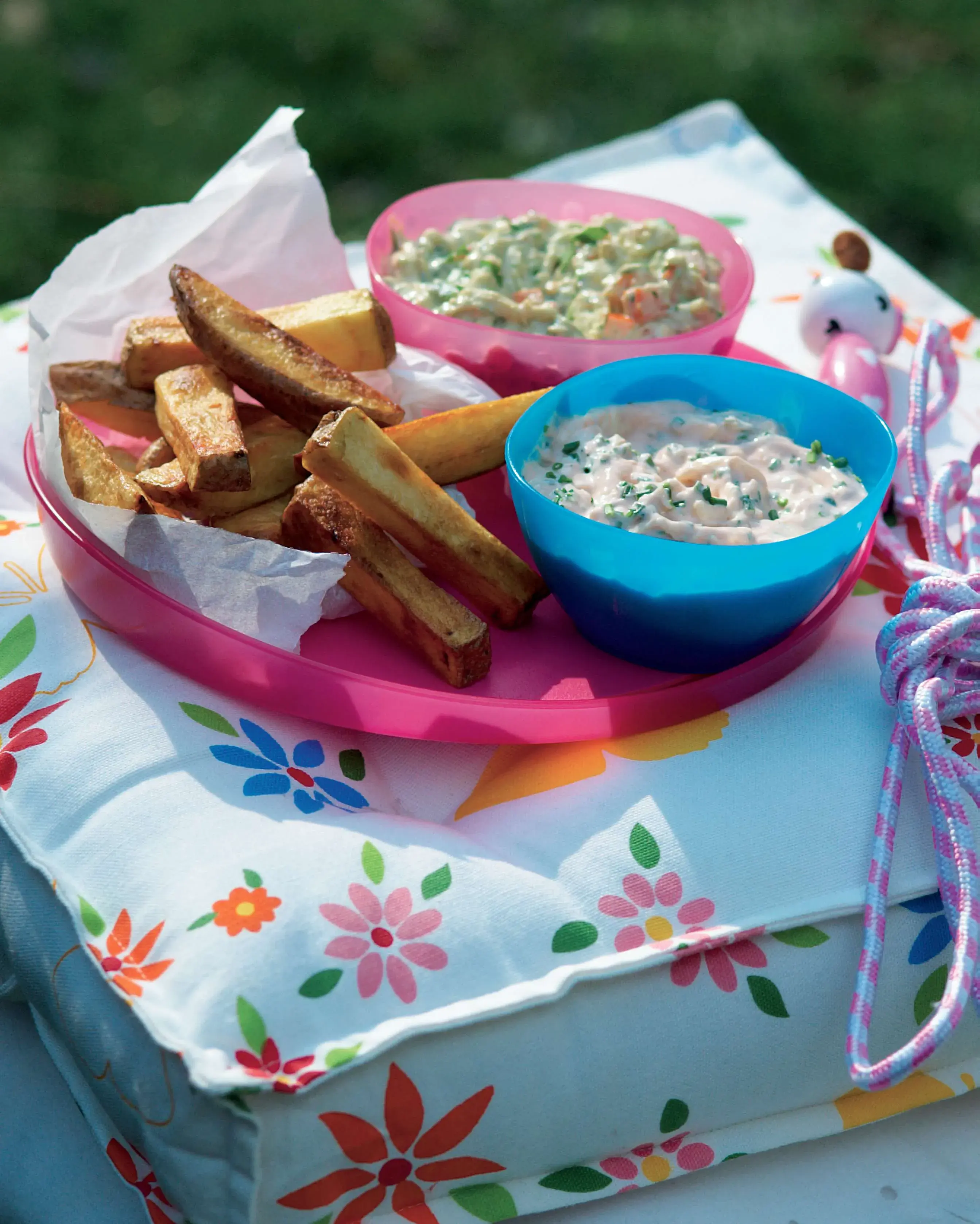 Dvě skvělé studené omáčky a bramborové chipsy jsou jídlo, do kterého nemusíte děti dvakrát pobízet.