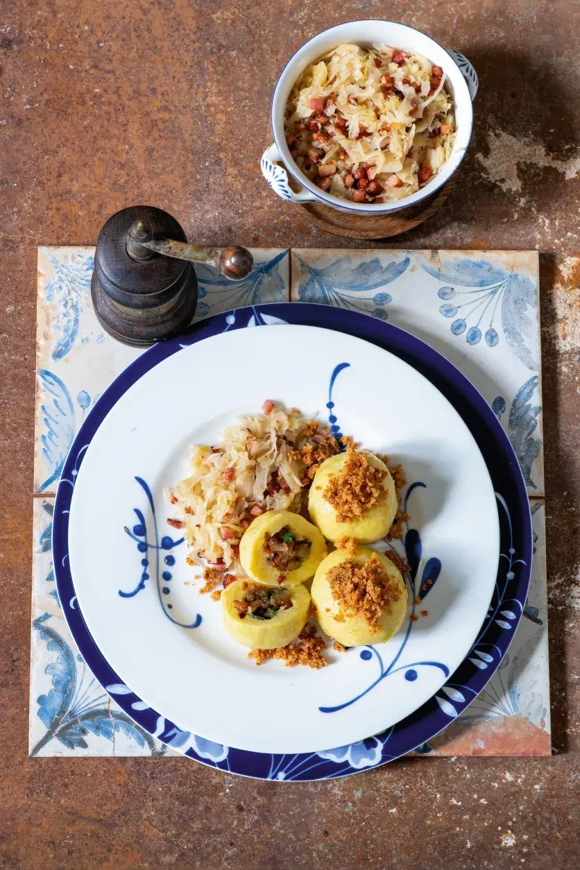 Plněné bramborové knedlíky se zelím jsou lahůdka, které nikdy nedokážeme odolat. Oprášili jsme rakousko-uherskou klasiku a máme pro vás recept na skvělou náplň ze škvarků s cibulkou, petrželkou a majoránkou.