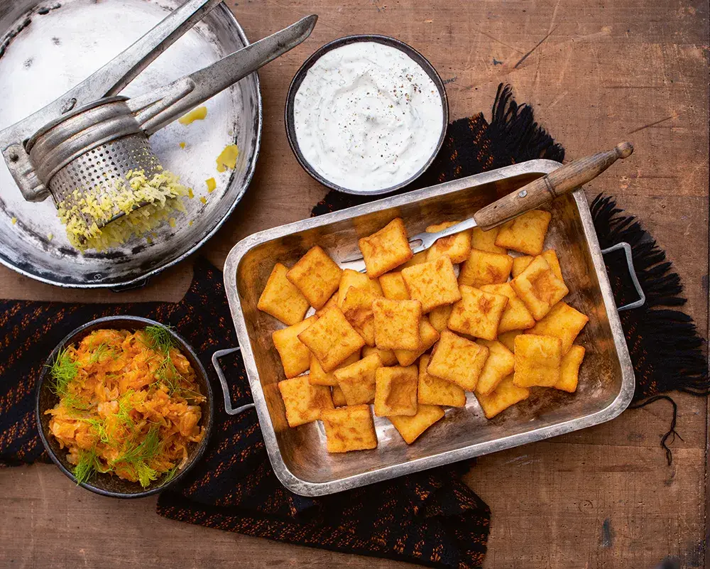 Rádi se při vaření inspirujete zahraniční kuchyní? Na zimní období vřele doporučujeme skvělé bramborové lístečky s fenyklovým zelím a dipem, eso salcburské kuchyně.