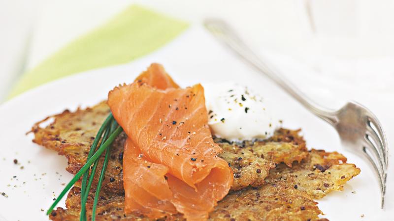 Placky budou výborné i se sázeným nebo ztraceným vejcem. Jestli chcete zdravější verzi, smažte je na (silnostěnné nepřilnavé) pánvi jen slabě potřené olejem.