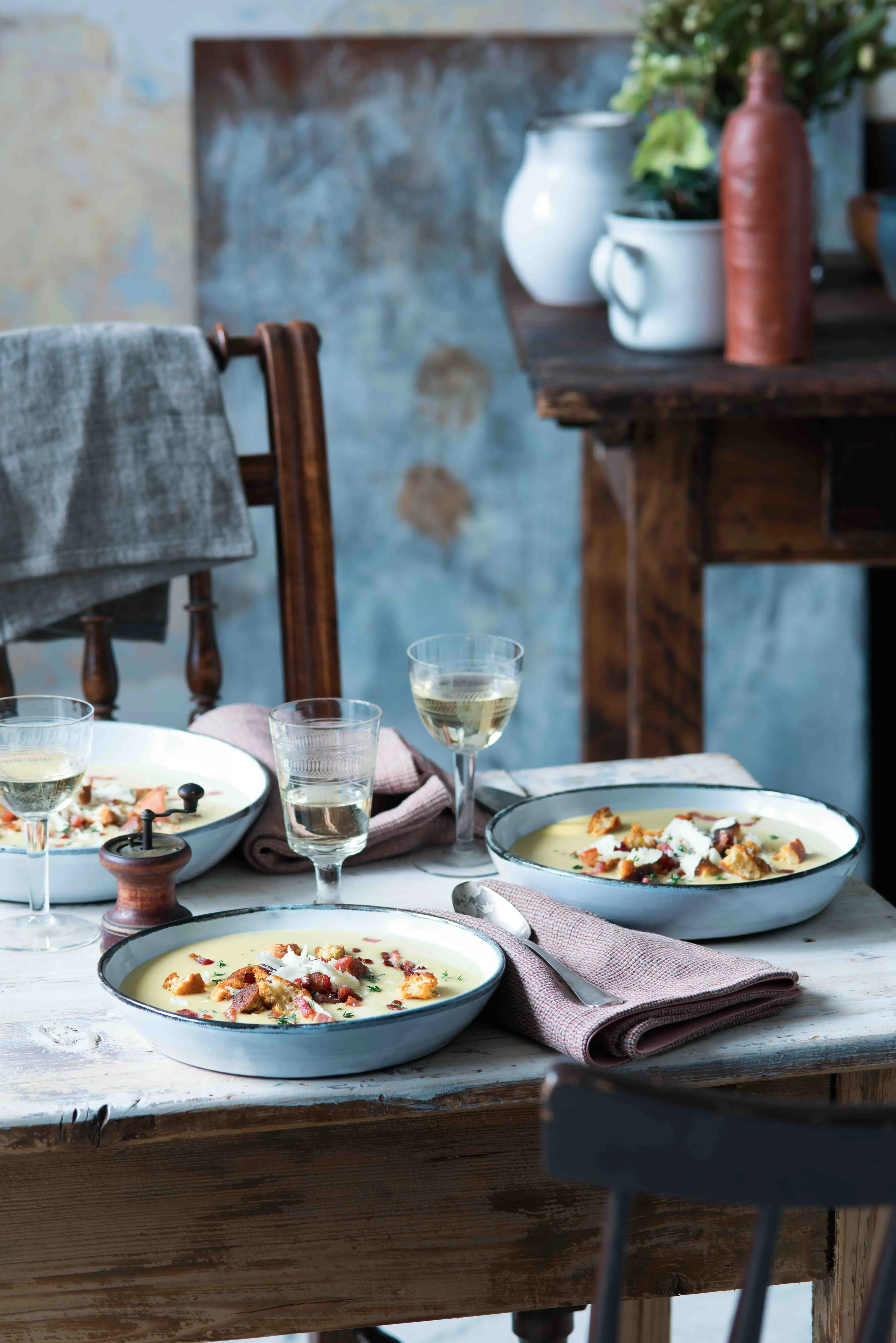 Je to bramboračka? Nebo pórkovka? Něco přesně mezi tím! Základ a hutnost téhle polévky tvoří brambory, pórek jí zase dodává neopakovatelně jemnou chuť. Bramborovo-pórkový krém servírujte s křupavými bylinkovými krutony. Uvidíte, že za takový výtvor právem sklidíte úspěch.
