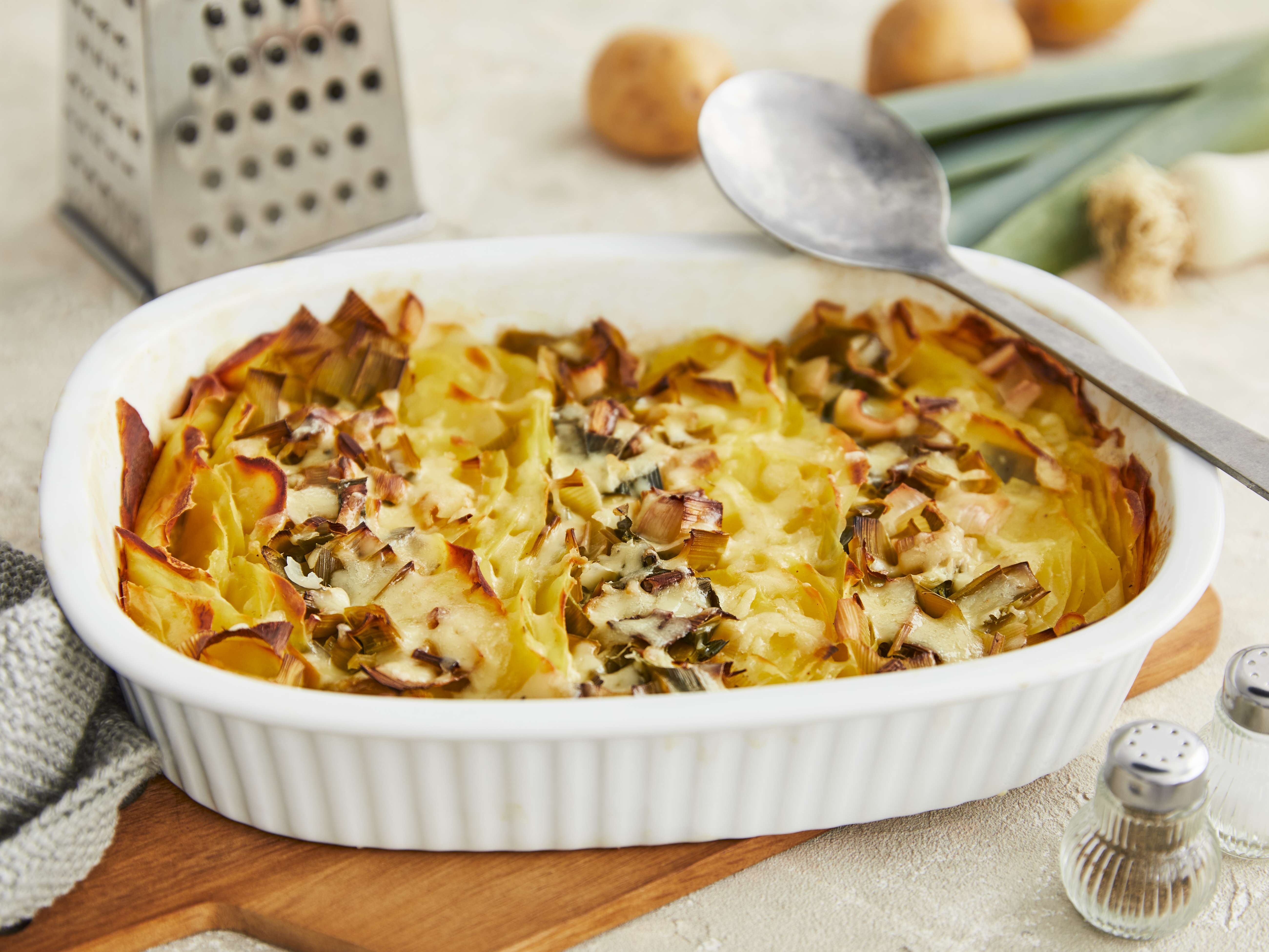 Vegetariánský nákyp s bramborami a pórkem připravíte během chvilky, zbytek práce za vás odvede trouba. Posypte ho výrazným sýrem – pak bude opravdu vynikající!