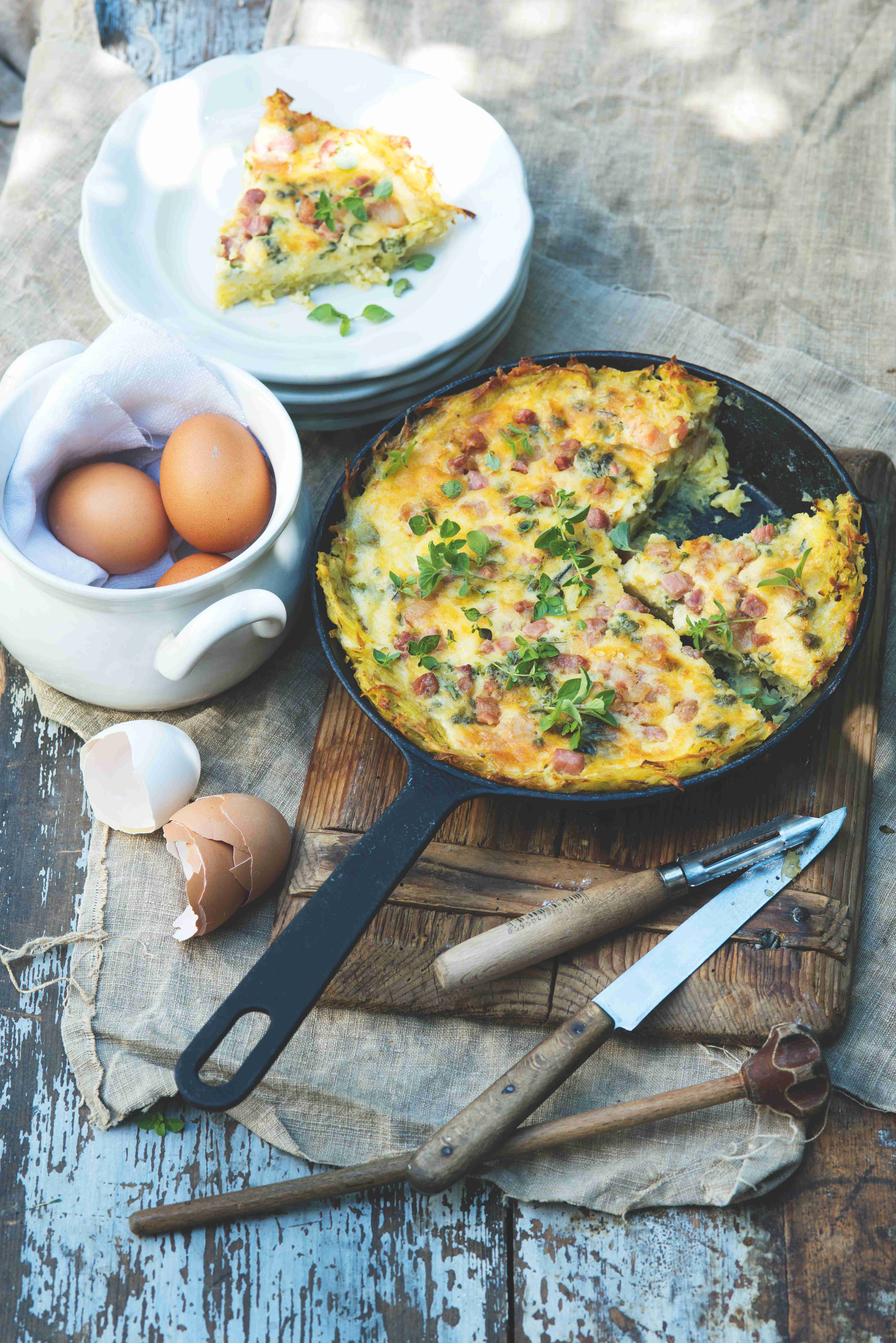 Korpus z bramborákového těsta je nejen neotřelý, ale také skvělý a bezlepkový! Pokud milujete slané koláče, ale rádi byste zajímavou změnu, pak bramborový ,quiche‘ se slaninou & majoránkou je ten pravý recept, který byste rozhodně měli vyzkoušet. Náplň můžete ozvláštnit čerstvým špenátem, žampiony nebo čerstvými bylinkami.