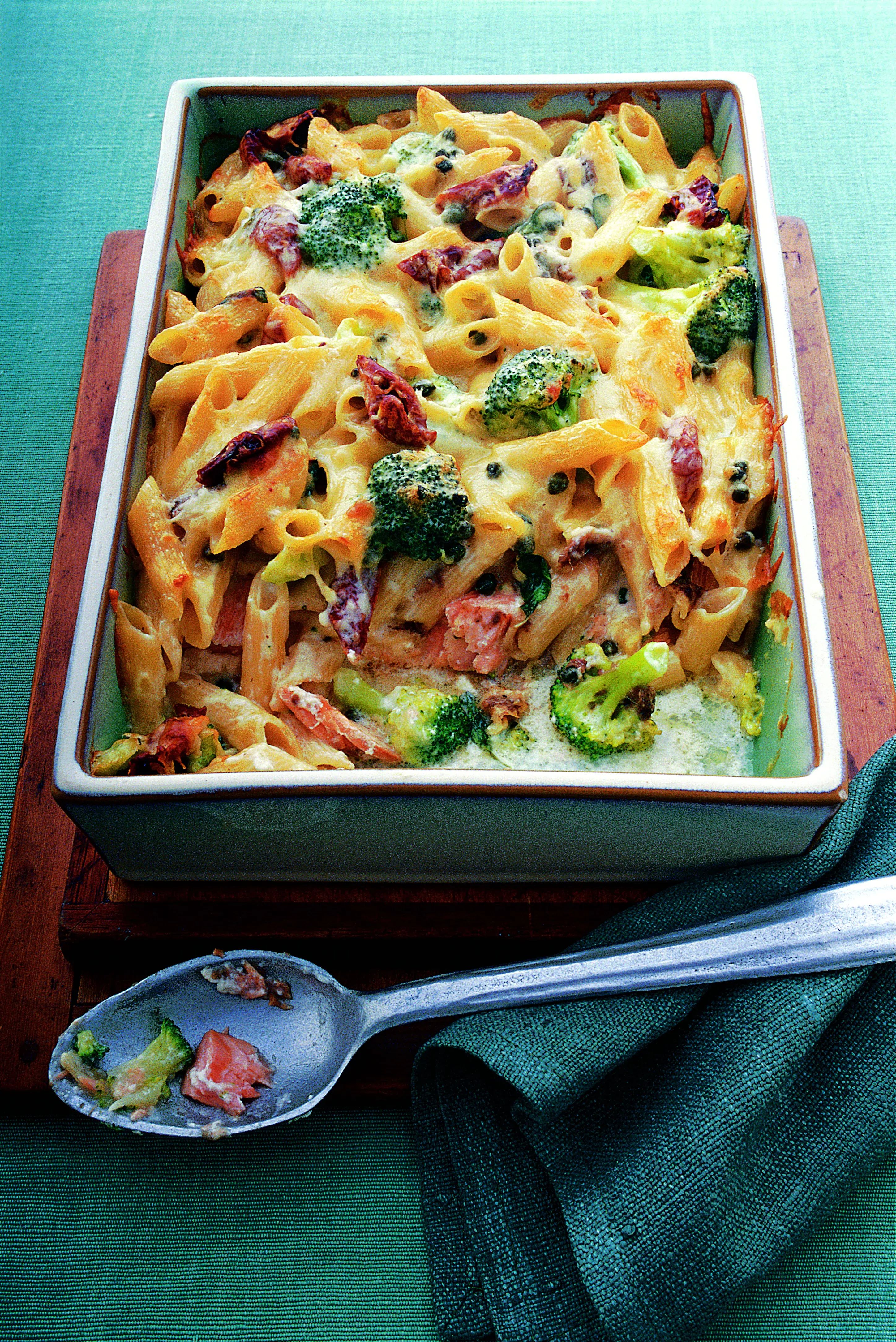 Zapečené těstoviny s brokolicí a lososem na italský způsob. Lehká a rychlá večeře z jednoho pekáče, která zabere jen minimum času. Krásně ji doplní osvěžující zelený salát s jednoduchou zálivkou.