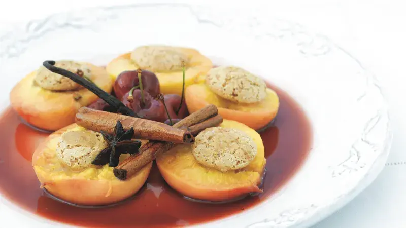 Kombinace broskví a třešní plných šťávy je naprosto neodolatelná. Dezertní víno Brachetto pochází z italského kraje Piemont a vyrábí se okolo města Asti (proslaveného i šumivým Spumante). Je spojeno i s místním folklorem, zvlášť s figurkou bodrého násosky Giovanniho. Tenhle dezert je ale opojný jen tak akorát…